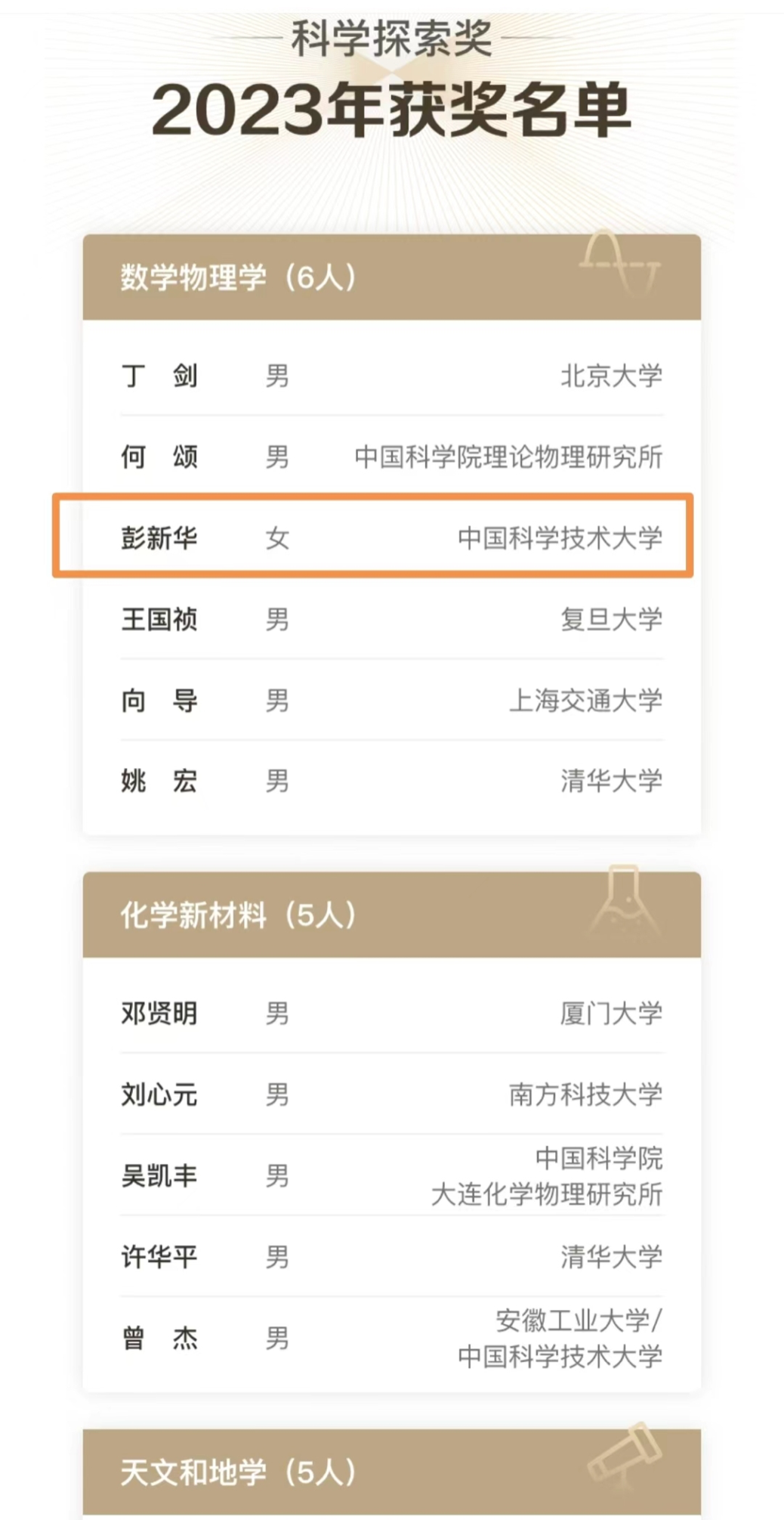 我校彭新华校友荣获第五届科学探索奖 |