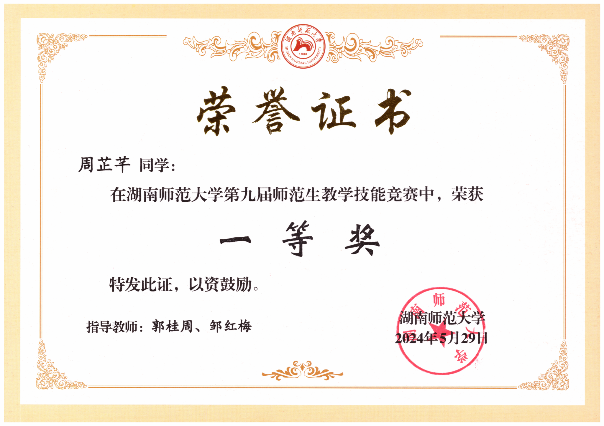 2024年湖南师范大学第九届师范生教学技能竞赛获奖