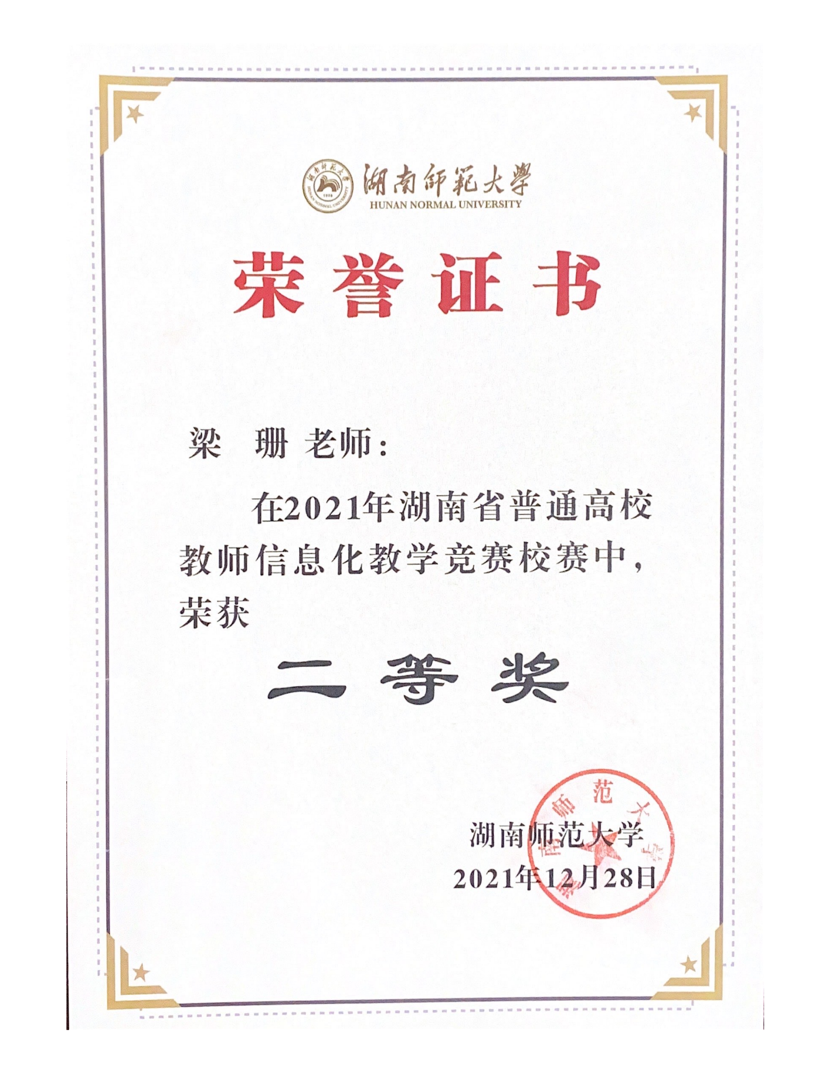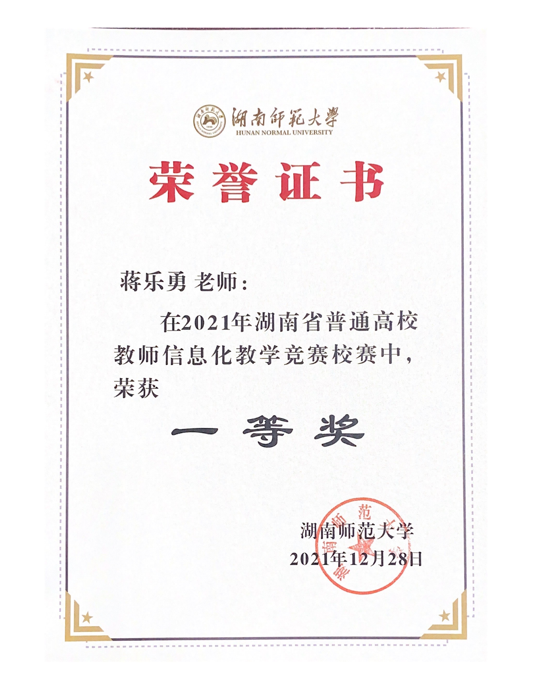 2021年湖南省普通高校教师信息化教学竞赛校赛获奖