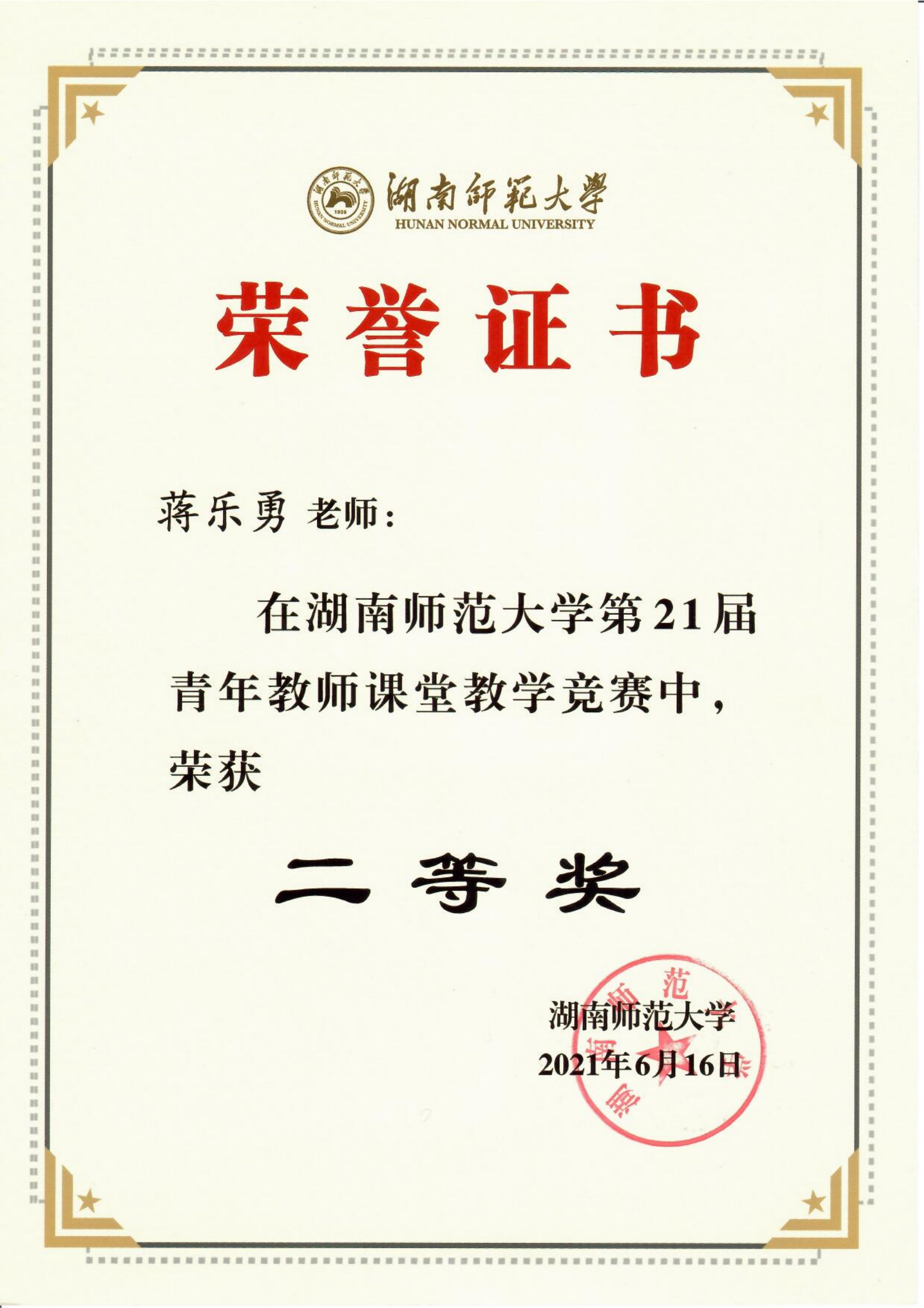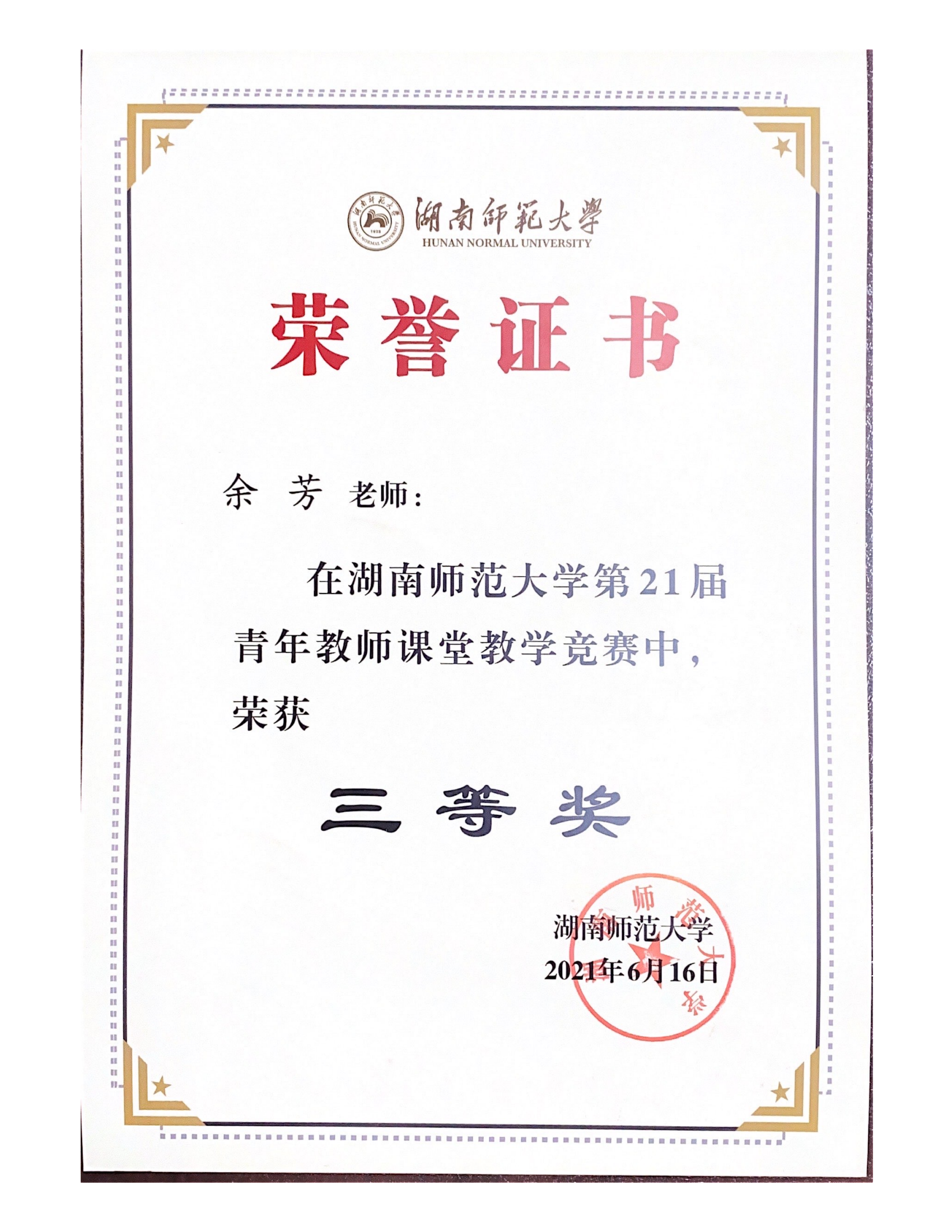 2021年湖南师范大学第21届青年教师课堂教学竞赛获奖