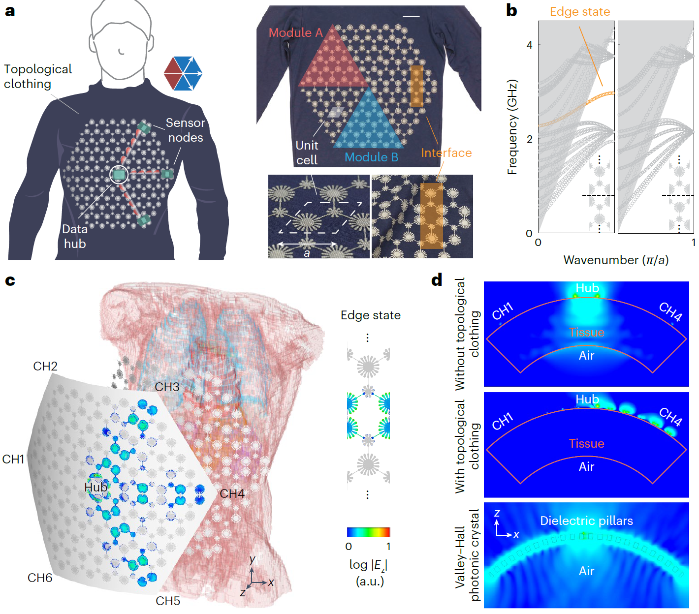近日,我院刘柱副教授和景辉教授在柔性拓扑超材料方面取得新进展,提出了拓扑超材料与功能性服饰、可穿戴系统相结合的全新研究工作。相关成果以“Body sensor networks based on flexible topological clothing”为题发表于Nature Electronics期刊。(论文链接:https://www.nature.com/articles/s41928-025-01516-w)