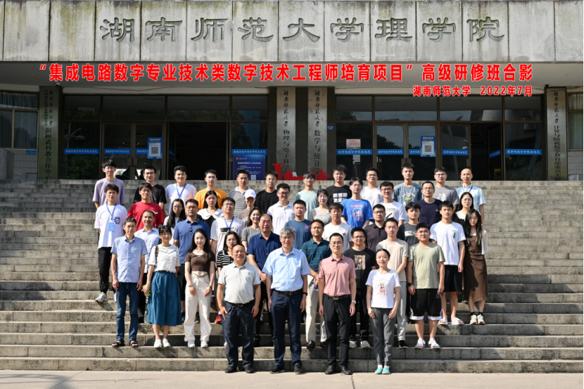 7月15日上午,由湖南省人社厅主办、湖南师范大学物理与电子科学学院承办的“集成电路数字专业技术类数字技术工程师培育项目”高级研修班开班仪式在格物楼325室举行。物理与电子科学学院院长唐东升、湖南师范大学人事处副处长饶昊出席仪式。仪式由物理与电子科学学院副院长李友明主持。