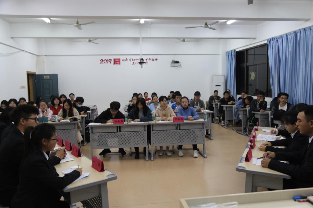 11月3日晚,物理与电子科学学院新生辩论赛总决赛在格物楼325教室举行。此次辩论赛由樊瑶瑶主持,物电院公费一班和物理大类一班分别为正反和反方。物电院黄茜、赵旋、蒋崇颖和商学院严一帆同学担任此次决赛评委。