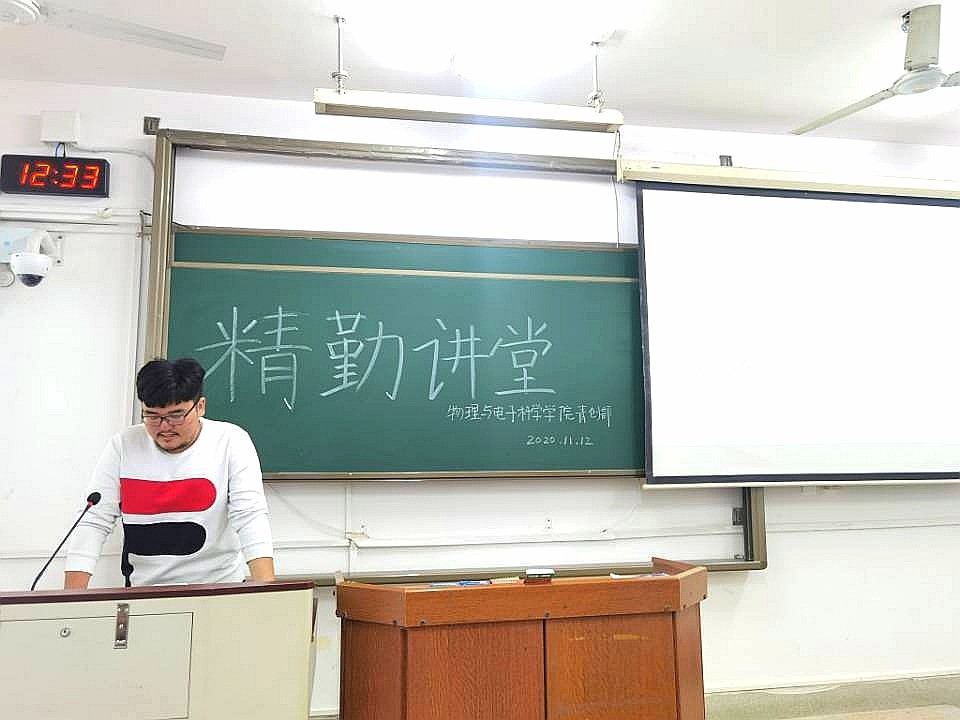 11月12日中午,物理与电子科学学院青年创新创业指导中心在格物楼220教室举办主题为“石墨烯的诗与远方”的精勤讲堂。2019级电子班吉程鹏担任主讲人。2019级、2020级部分同学参加了此次讲堂。