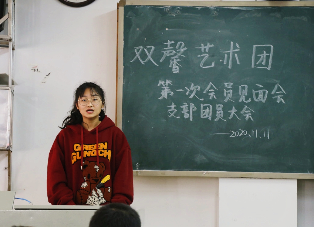 11月11日中午,物理与电子科学学院双馨艺术团在格物楼209教室举行第一次会员见面会暨支部团员大会。双馨艺术团理事长兼团支书茹贞贞主持了此次会议。