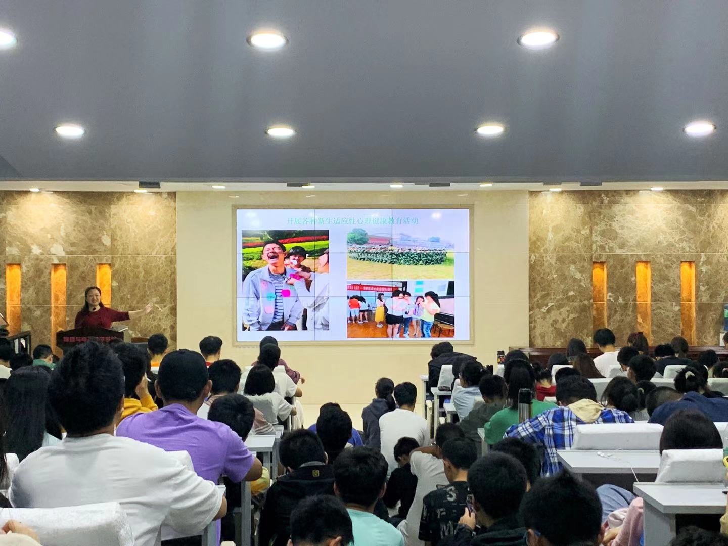 讲座开始阶段,余洁老师首先向同学们详细介绍了学校心理健康教育与咨询中心的有关概况,并对中心已举办过的新生适应性心理健康教育系列活动进行展示。余洁通过对大学新生适应大学生活、处理人际关系以及做好情绪认知和管理等各项大学新生常见心理问题进行分析,并提出了相关建议。余洁强调,所有同学都要学会积极、正向关注心理问题,在校期间,如果遇到任何情绪管理与压力上的问题与困惑,及时向辅导员和心理老师寻求帮助。参与讲座的每位同学都侧耳倾听,孜孜以求。