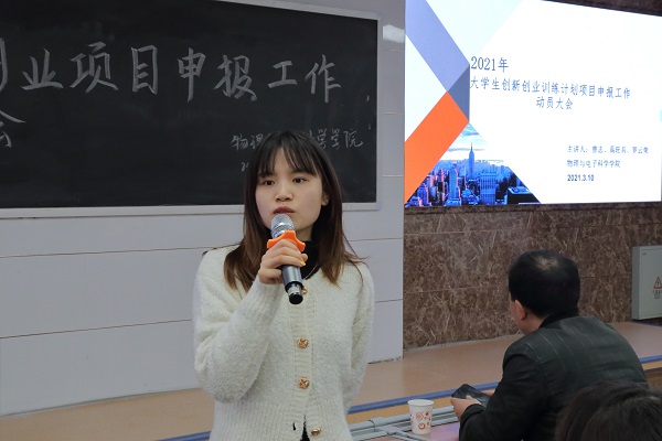 此次会议旨在对2021大学生创新创业项目申报工作进行动员,引导同学们认真学习、积极实践和思考,希望同学们抓住机会,积极参与大学生创新创业项目申报工作。