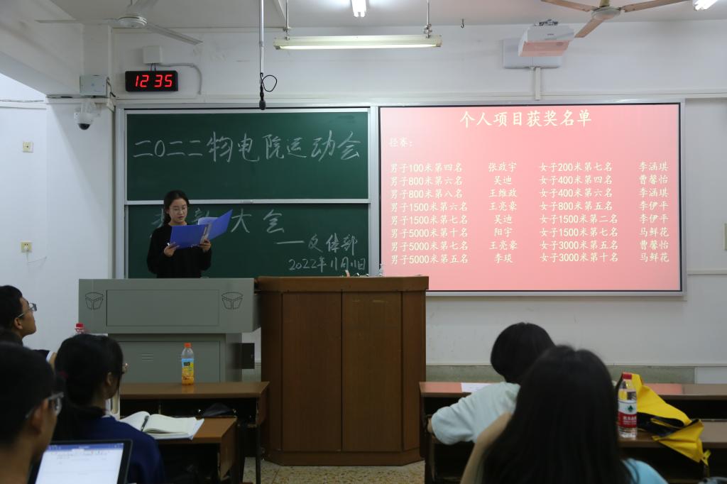 此次会议分为总结发言、精彩瞬间和颁奖仪式三个部分。学生会主席团向婷肯定了运动员们的参赛热情和所获佳绩,希望运动员在运动和学习上继续发扬物电院的扎实作风。