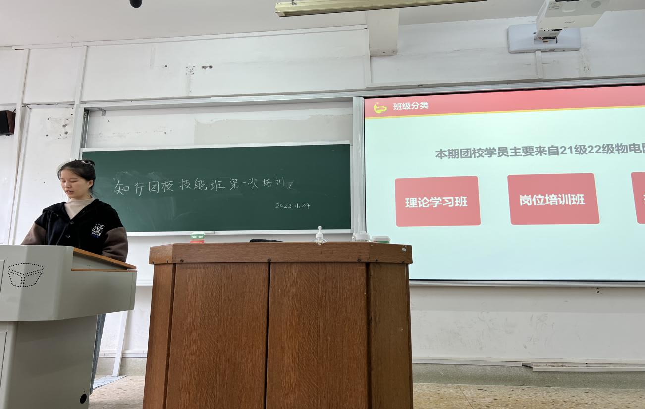 (通讯员 欧阳婷)11月24日,物理与电子科学学院第五期知行团校技能班第一次培训会于格物楼219教室举行,物电院21级本科生周学文担任此次培训会主讲人。全体技能培训班学员参与此次培训.