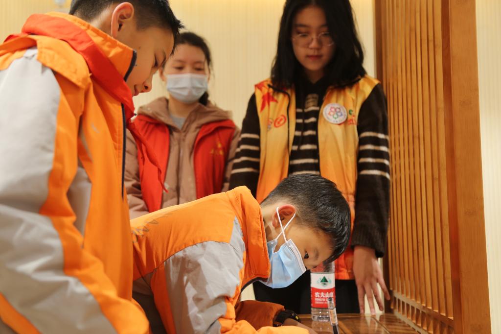 志愿者组织小朋友们签到