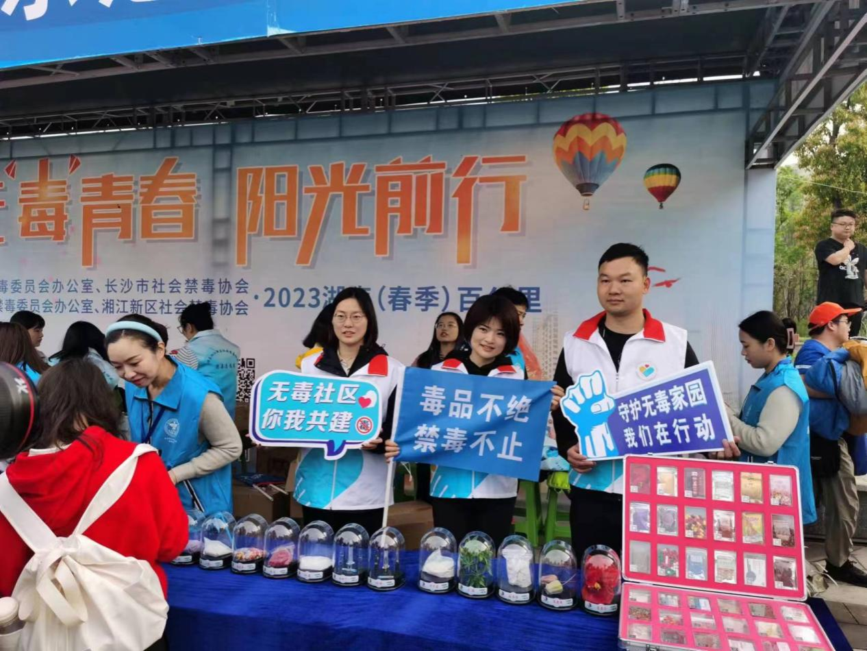 (通讯员:刘博)4月15日国家安全日到来之际,长沙市禁毒办,市社会禁毒协会,湘江新区禁毒委员会办公室,区社区禁毒协会联合开展无“毒”青春,阳光同行——百公里毅行禁毒宣传活动,物电院团委青工部同阳光教育协会组织志愿者,协助洋湖国际社区开展禁毒社会实践活动。