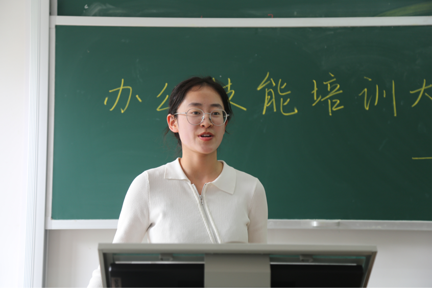 (通讯员 杨蘅力 袁雅倩 )4月19日中午,物理与电子科学学院学生会于理学院219教室举行办公技能培训大会。2021级电子班张敏、2021级物理二班廖芮欣担任主讲人,2022级物理三班刘磊钰担任主持人。
