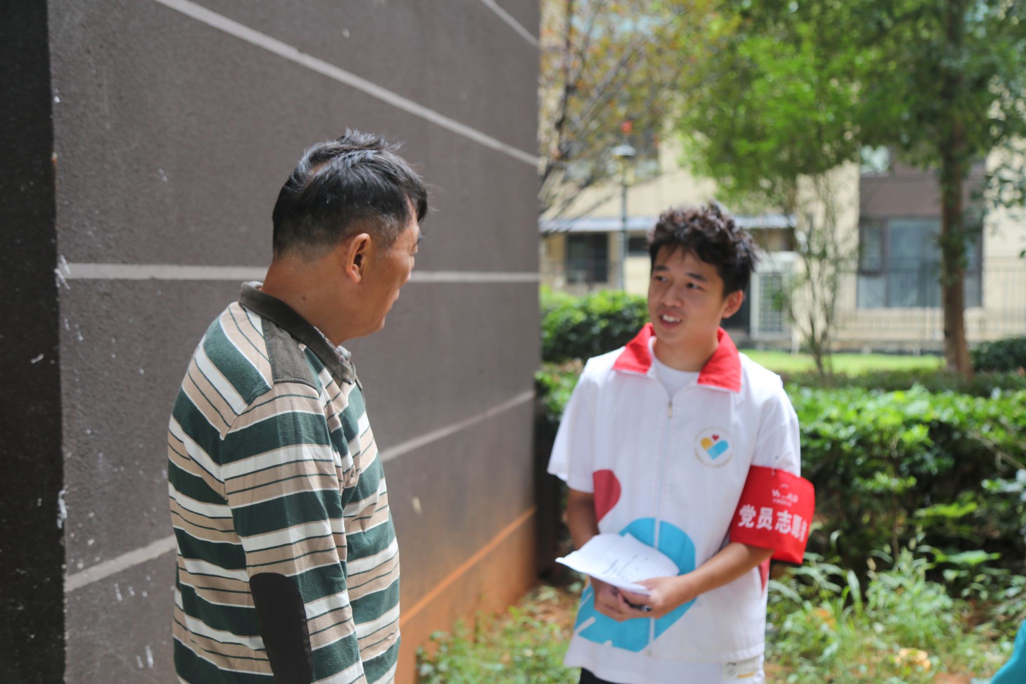 志愿者与社区居民交流
