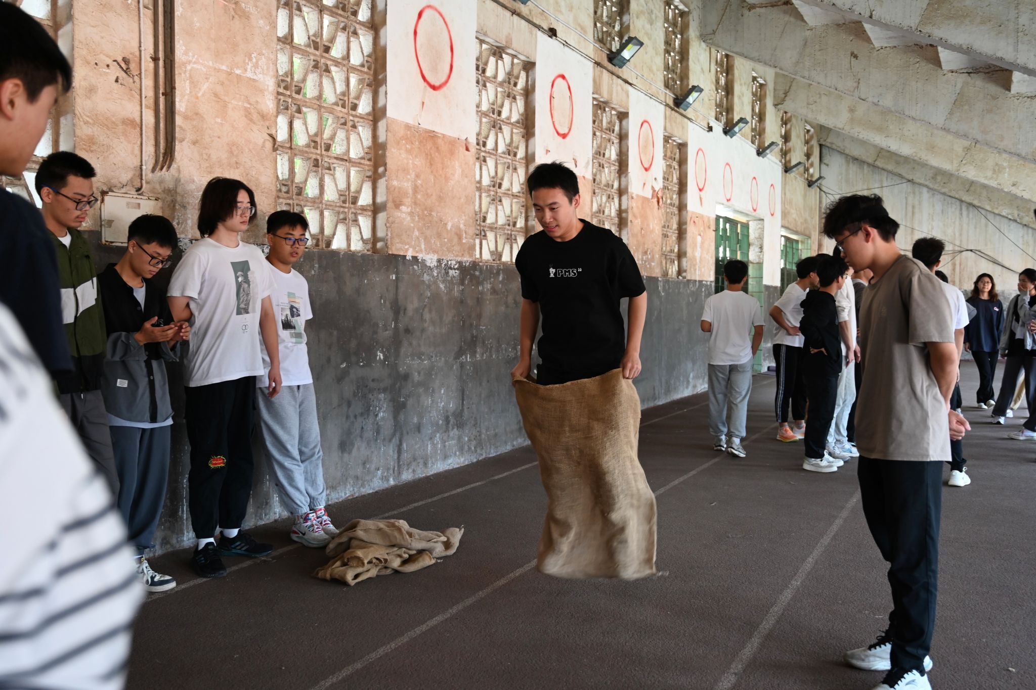 五十米往返接力跑训练进行中