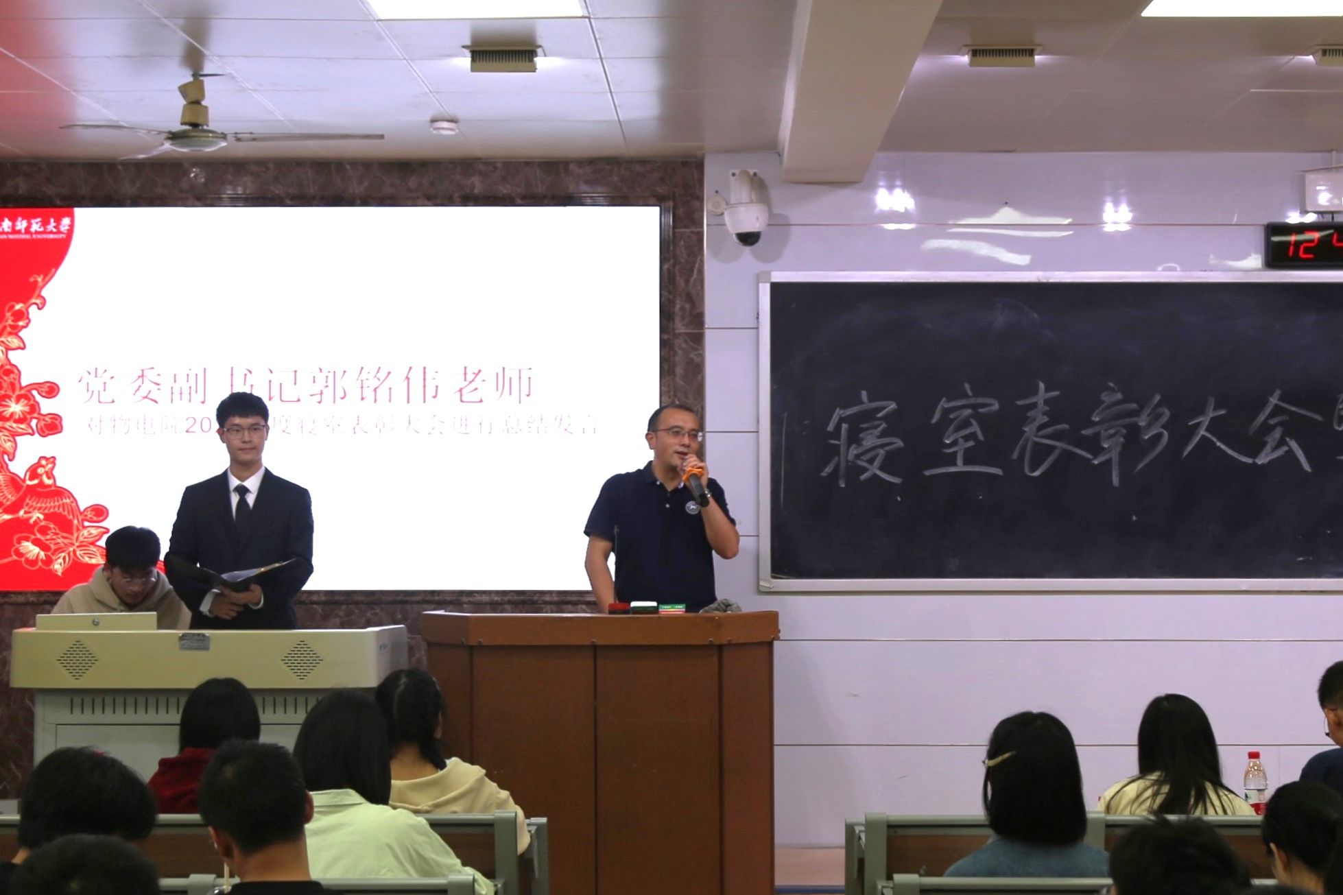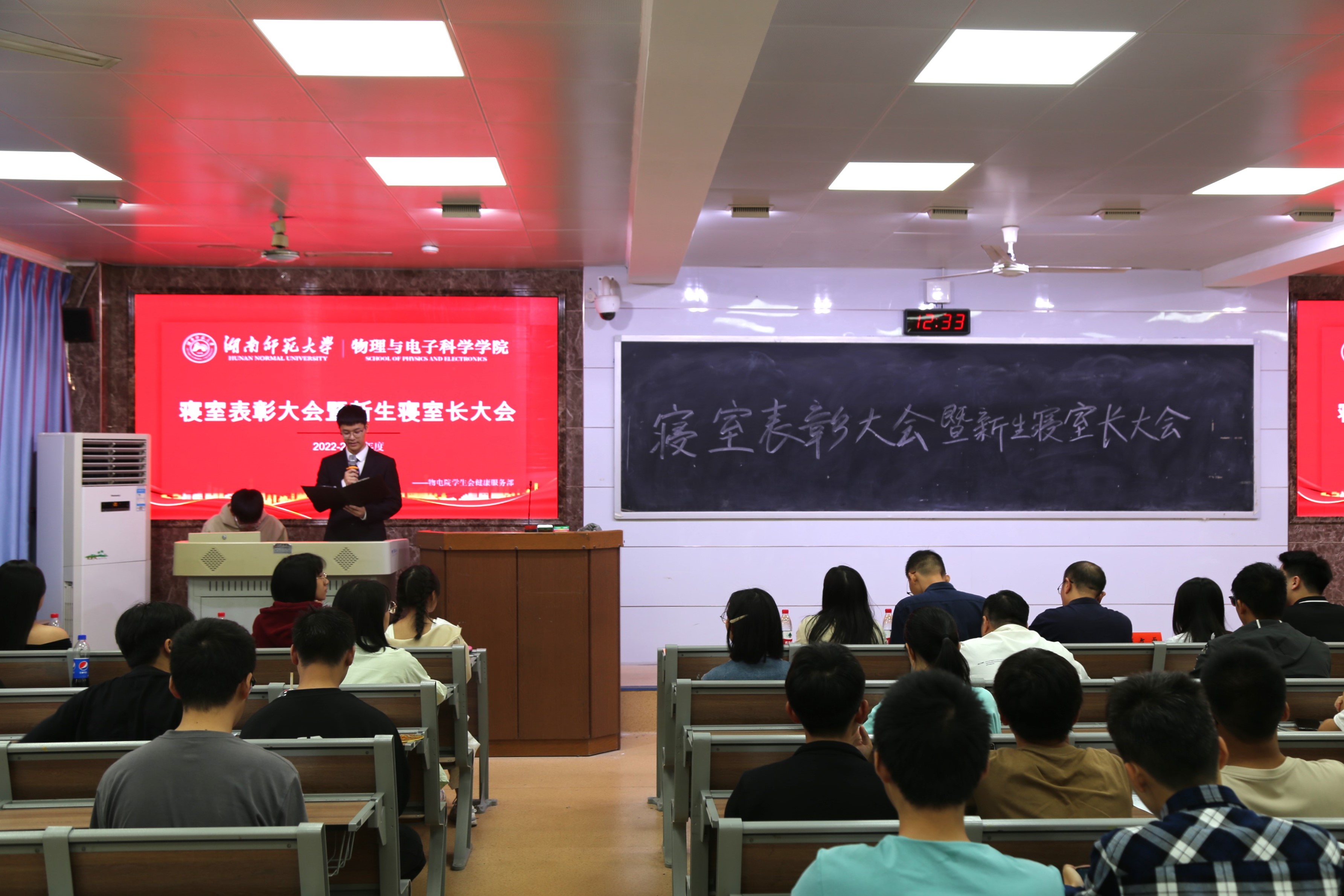 (通讯员 段楚楚)10月31日中午,物理与电子科学学院于格物楼109教室召开2023学年度寝室表彰大会暨新生寝室长大会。院党委副书记郭铭伟、学工办全体辅导员出席大会,院学生会健服部部长曾胤灿担任主持人。