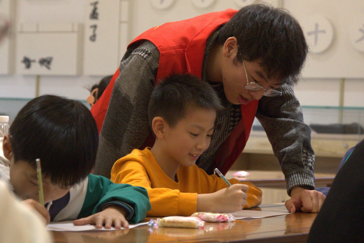 小朋友们在志愿者指导下绘画