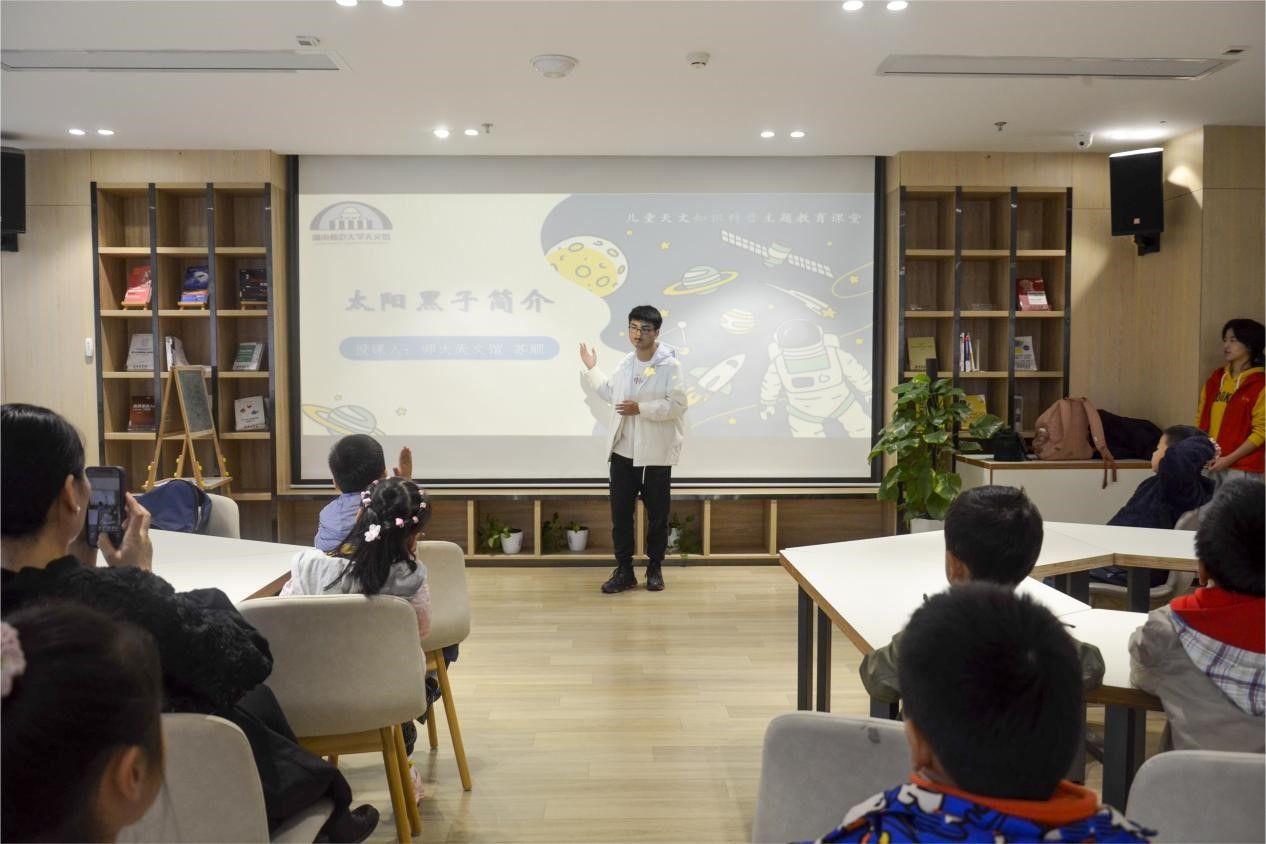 (通讯员 张婧怡 段楚楚)11月18日,物理与电子科学学院天文协会于岳麓区图书馆举办了“太阳黑子的一生”儿童科普活动。物电院天文协会干事苏顺担任活动主讲人,物电院4名志愿者参加活动。