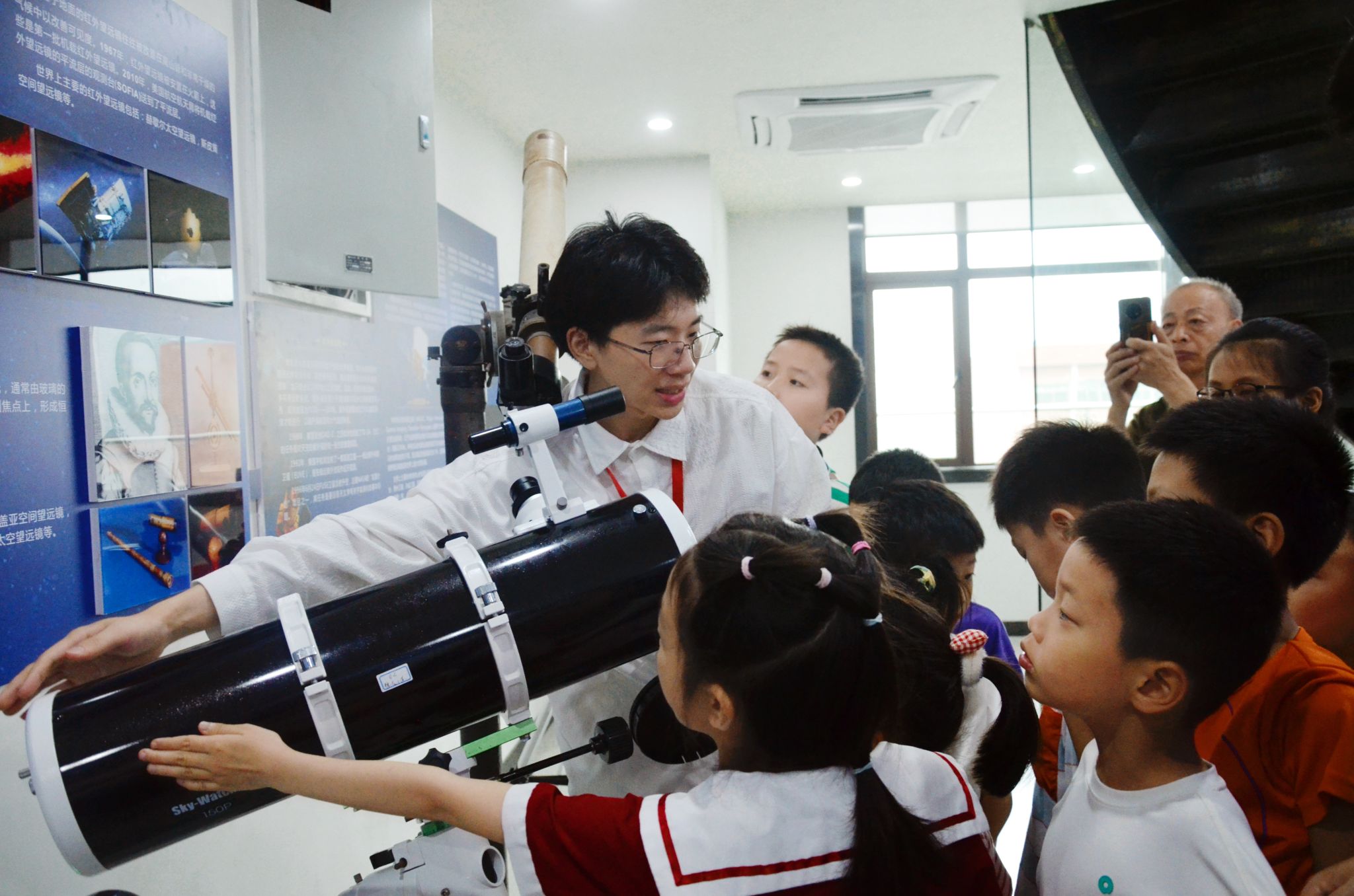 (通讯员张婧怡段楚楚)为普及天文知识,激发青少年的科学兴趣,提升公众的科学素养,5月19日上午至下午,物理与电子科学学院(以下简称“物电院”)天文协会于天文馆举办天文讲解和星趣课堂。天文协会理事张孟翔、聂晓津担任星趣课堂主讲人,姚睿、戴齐宇担任天文讲解员。