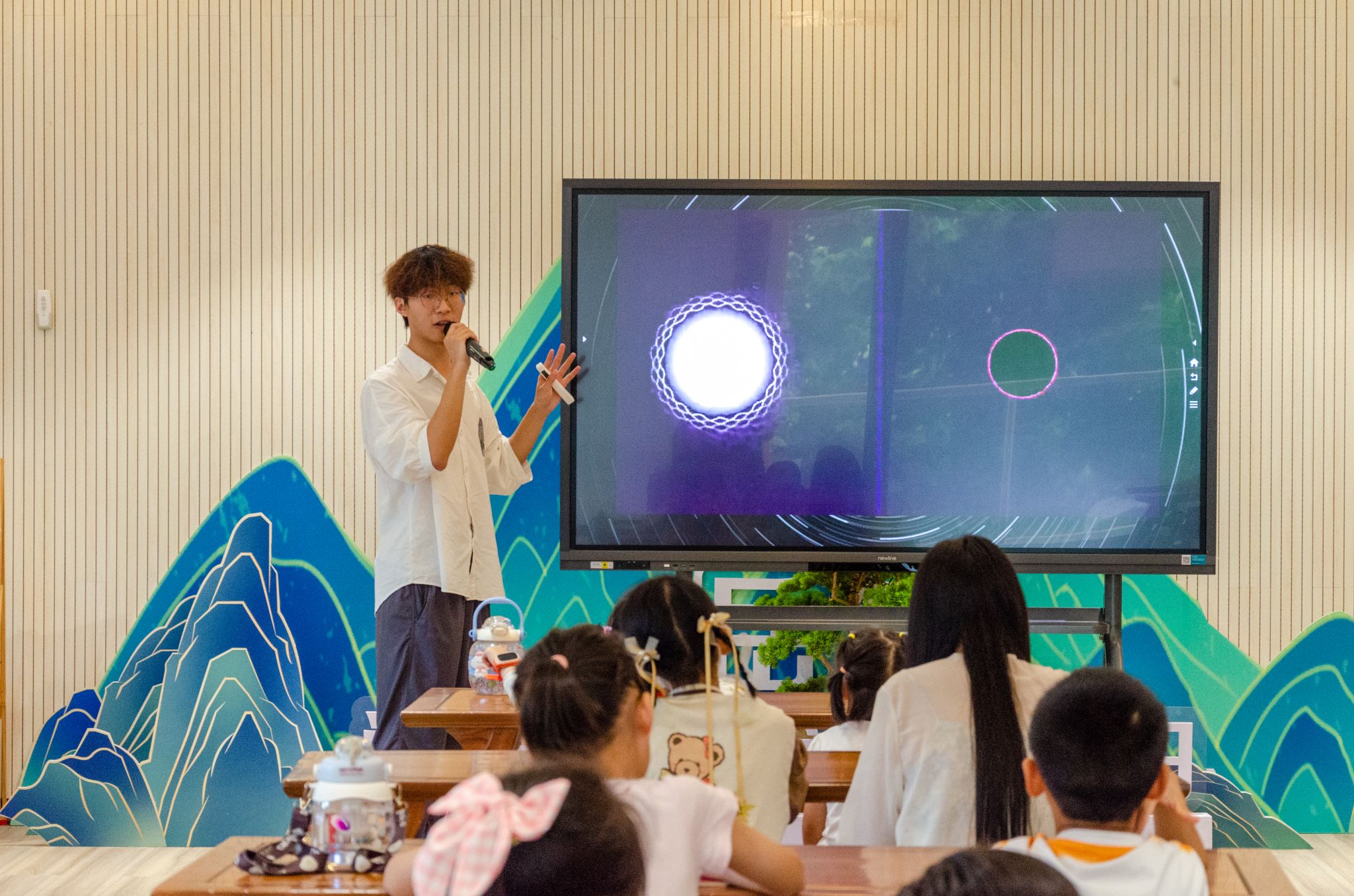 此次活动主题为“黑洞的奥秘”,活动内容丰富多样,涵盖了黑洞的了解、黑洞研究的发展历程、黑洞的组成部分、黑洞的分类、如何观测到黑洞等多个方面。喻航宇通过生动有趣的讲解,带领小朋友们一起探索了黑洞这一神秘宇宙现象的奥秘,并引导他们思考黑洞背后的科学原理。为了让小朋友们更加直观地了解黑洞,课堂上还播放了一段模拟黑洞的视频,让他们感受到了黑洞的神秘魅力。此外,小朋友们还动手画出了自己心目中的黑洞,通过实践加深了对黑洞的认识。