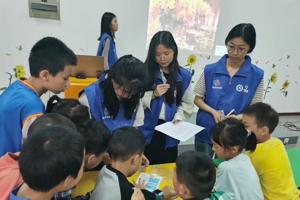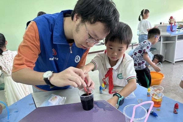 志愿者帮助小朋友完成实验