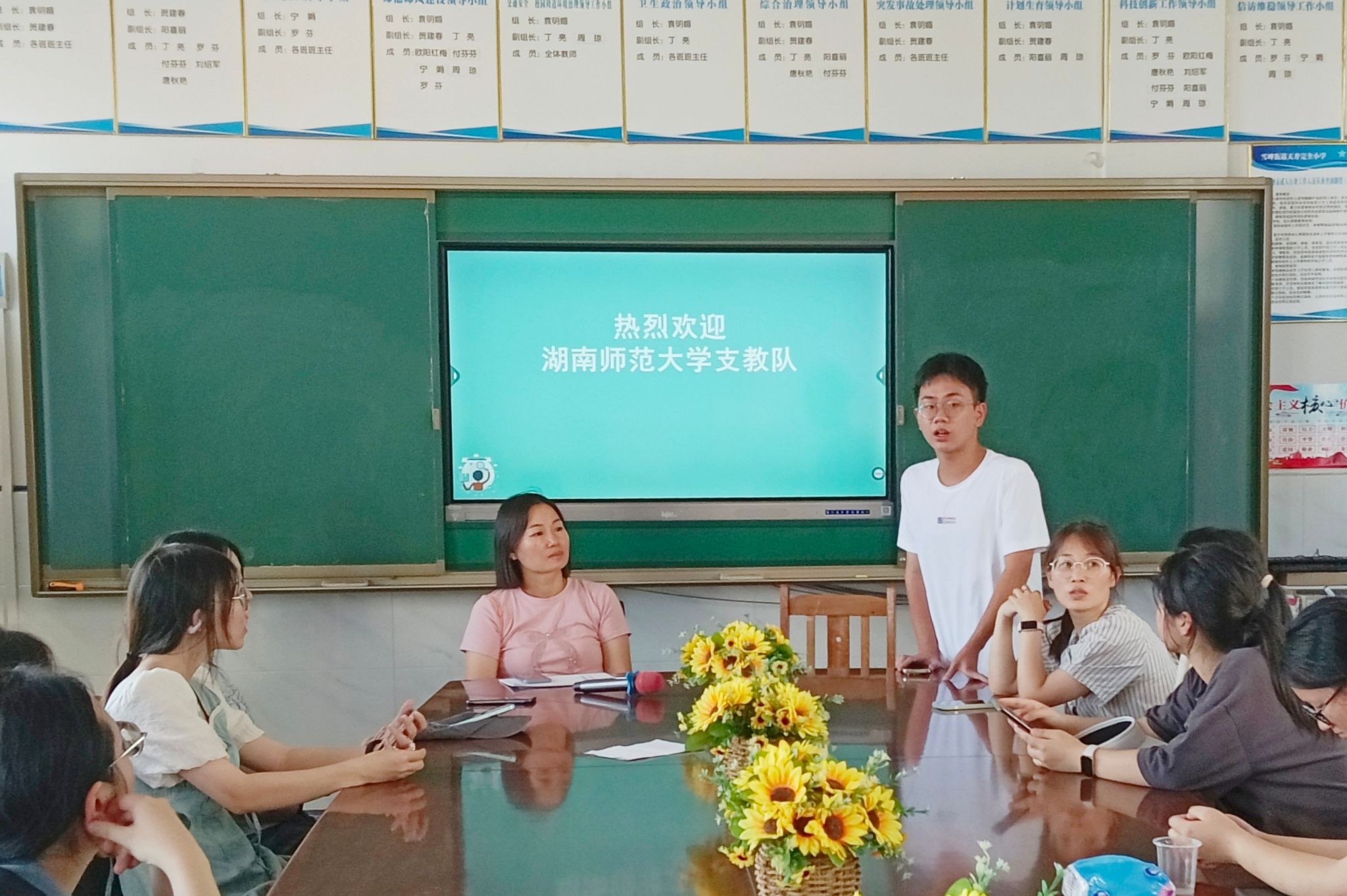 天井小学负责人接待支教队全体成员