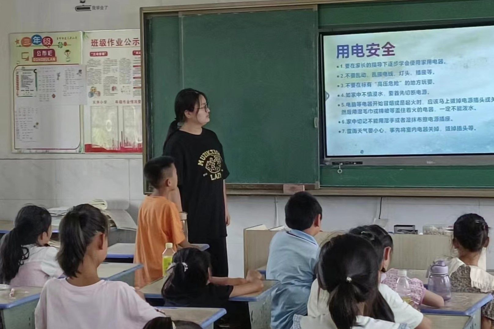 (通讯员 钟春花 郭昕怡 谭烨茜)为提高未成年人的安全防范意识、自我保护意识,让每一位学生度过一个平安、快乐的假期,7月11日上午,物理与电子科学学院“锦上添花”支教队于邵阳市洞口县天井小学开展安全教育活动。支教队队员刘云利担任授课人。