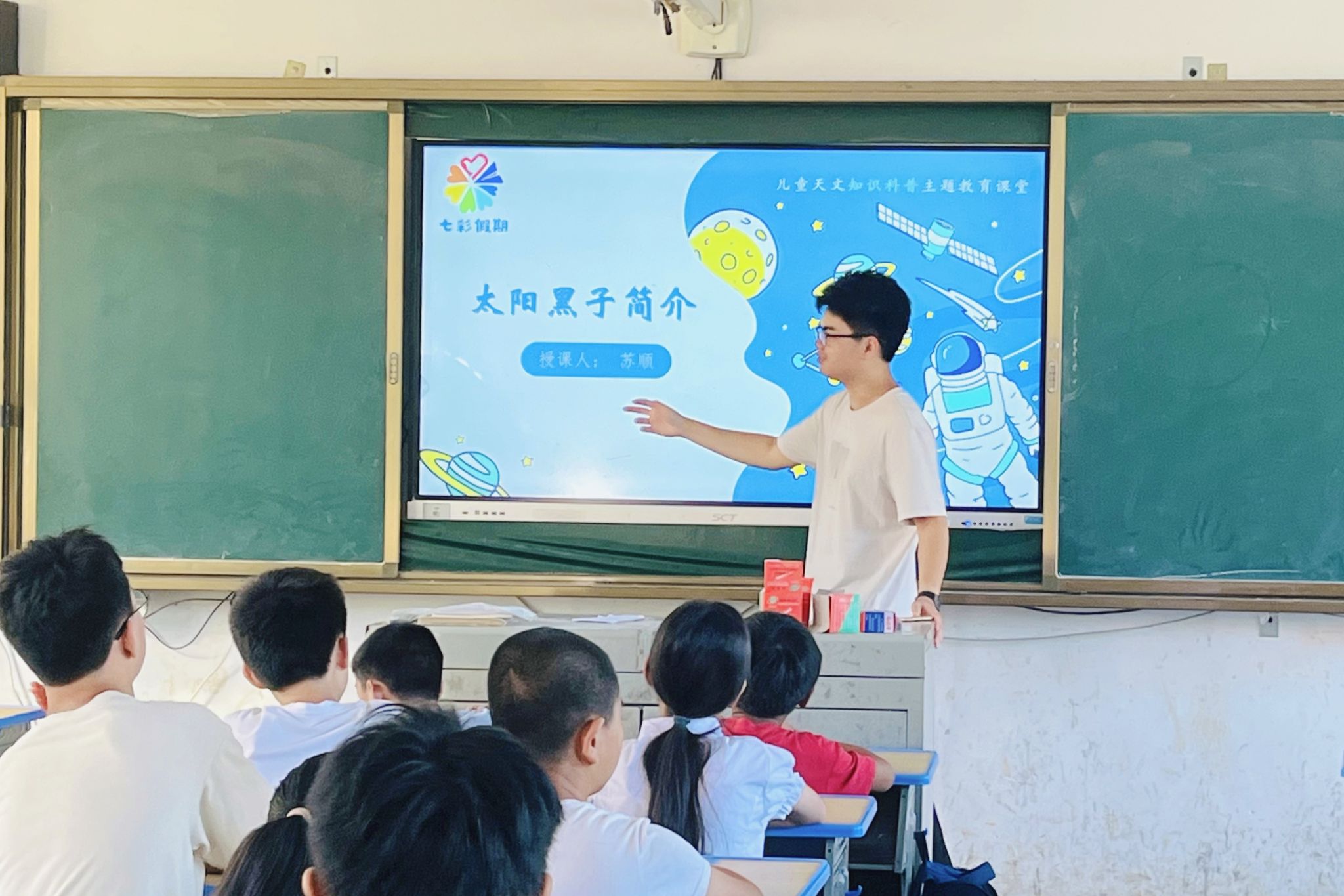 (通讯员 张婧怡 何梓如 罗荔彤)7月19日上午,物理与电子科学学院三下乡“筑梦星辰”社会实践团于娄底市双峰县桥亭中学开展“太阳黑子”天文课堂。社会实践团队员苏顺担任主讲人。