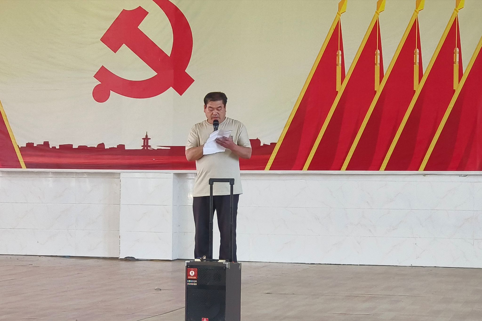 麻江学校校长廖国军致辞,他向湖南师范大学的16名大学生志愿者表示了衷心的谢意,感谢实践团成员们陪伴麻江村的孩子们度过了别样的七彩假期,用师范专业知识激发他们的学习兴趣和潜能,用无私奉献的精神厚植他们的爱国情怀。他鼓励孩子们向大学生志愿者看齐,常怀感恩之情,践行报国之志。