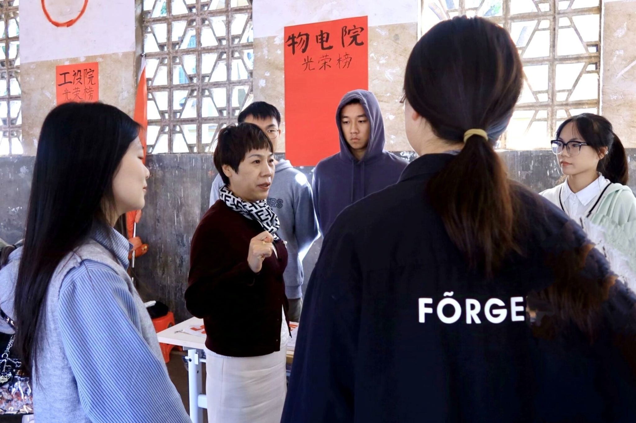 校运会期间,院党委书记罗嵘、党委副书记郭铭伟及学工办辅导员老师亲临赛场,慰问了参赛运动员和后勤志愿者。罗嵘特别提醒志愿者们要密切关注运动员的身体状况,确保赛前赛后的各项服务周到细致,为运动员们提供坚实的保障,彰显物电学子团结互助、追求卓越的精神风貌。郭铭伟副书记对运动员们展现出的奋勇争先精神给予了高度评价,激励大家不仅要赛出个人风采,更要赛出高水平,体现出物电学子勇于超越自我的坚定信念。老师们的亲切慰问极大地鼓舞了运动员和志愿者的士气,使他们更加坚定了为学院赢得荣誉的决心。