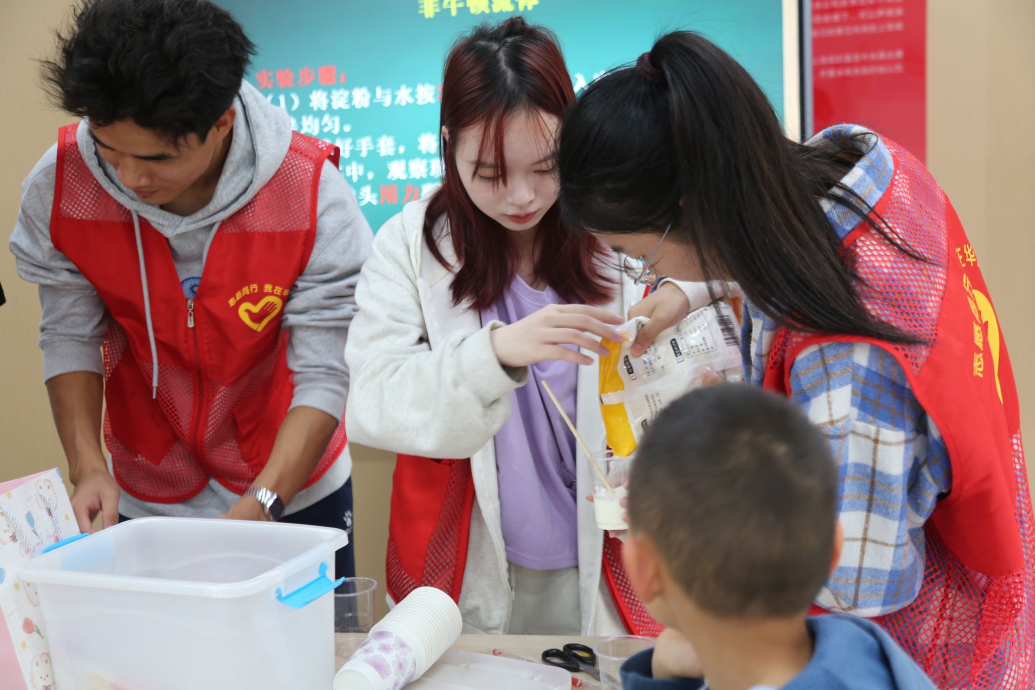 志愿者帮助小朋友做实验