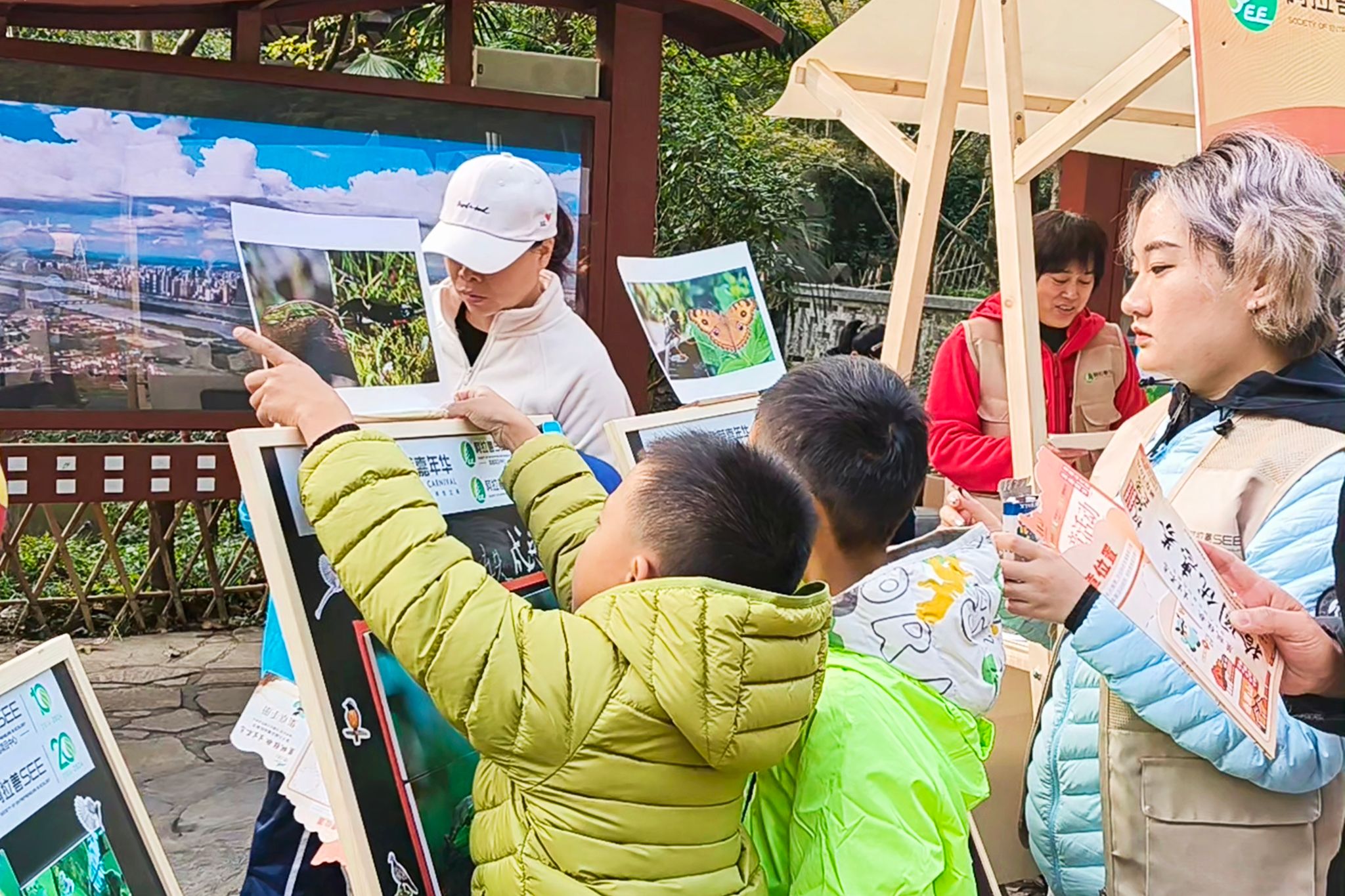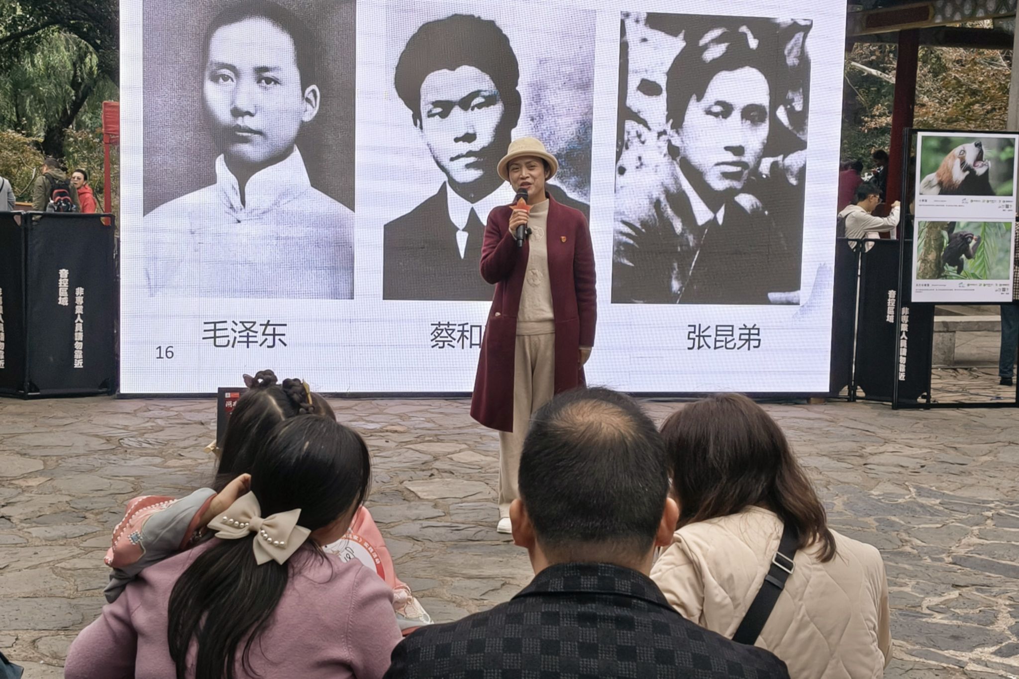 在活动负责人的组织下,志愿者们各司其职,前往各自负责的活动场地。此次活动划分为市集摊位区、摄影作品展览区和大咖演讲三大核心板块。市集摊位区采用发放趣味闯关游戏卡的形式吸引游客参与游戏,让参与者在互动中亲近自然、增长知识。影像展分为国内生物多样性概览与岳麓山生物多样性特写两个主题展区,向广大游客展示了地球上纷繁复杂的物种多样性,深刻传达了保护动植物资源、维护生态平衡的重要理念。与此同时,四位演讲人轮番登台,他们从历史渊源、生物科学、文化传承等多个维度,全面而深刻地讲述了岳麓山从古至今的传奇故事,深刻剖析了岳麓山作为湖湘文化璀璨明珠的独特地位,以及它在湖南人民心中不可替代的精神象征意义。