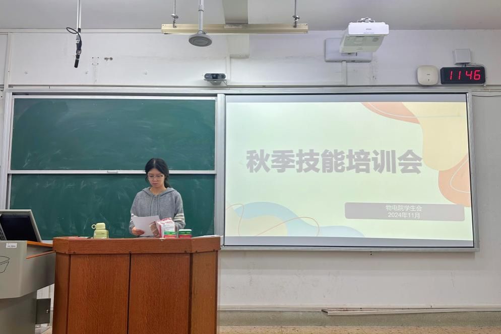 (通讯员 朱忆晗 张跃骞 罗荔彤)11 月 21 日中午,物理与电子科学学院学生会于格物楼219教室举办秋季技能培训会。院学生会办公室部长马嘉琦主持大会,办公室副部长于琪博艺、宣传部副部长李林栗担任主讲人。