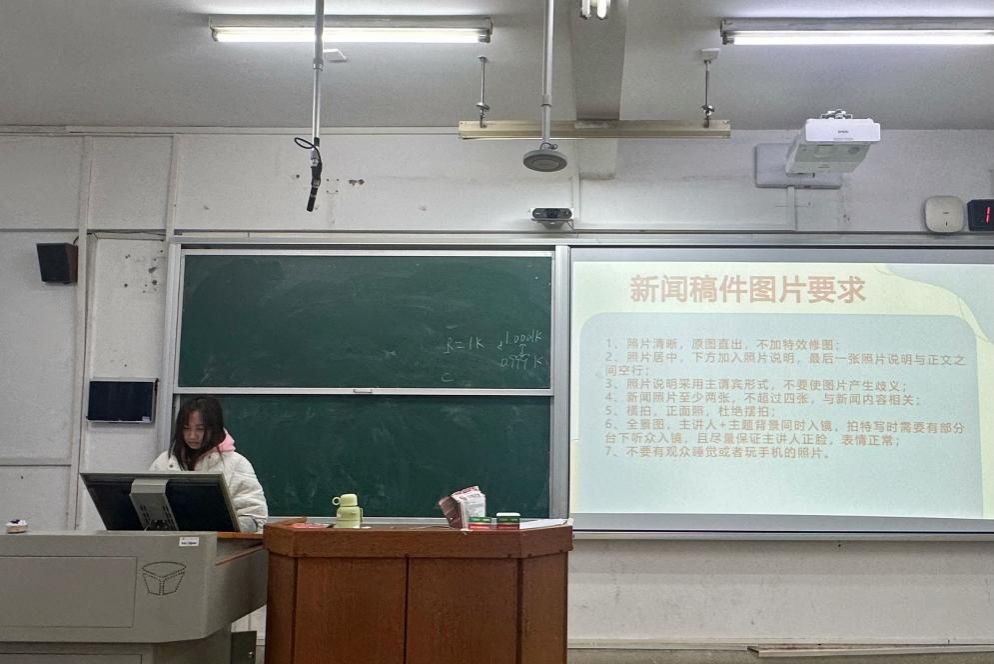 李林栗围绕新闻及推送的编辑工作展开培训。新闻稿件内容的撰写方面,李林栗详细讲解了新闻结构、语言规范、主题选取等关键要素。针对新闻照片的拍摄要求,她从构图、光线运用、拍摄角度等多个维度进行了阐述,并通过展示优秀与待改进的新闻照片案例,帮助同学们理解了如何拍摄出符合新闻推送需求的高质量照片。
