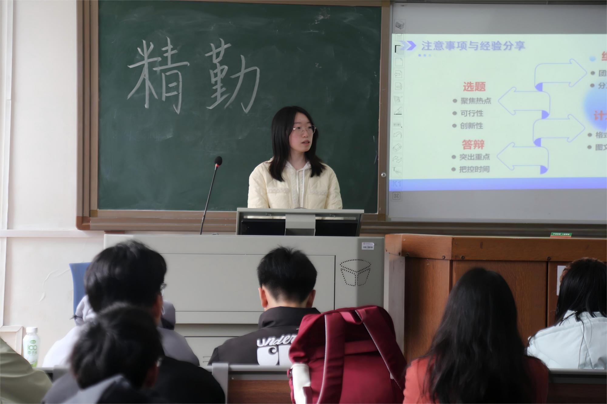 此次宣讲会系统地介绍了竞赛的概况、流程、申报条件、作品分类及要求,强调了比赛注意事项并进行经验分享。周思彤从组建团队、选题策略、计划书撰写及路演准备、答辩技巧多方面出发分享经验。她强调了团队协作的重要性,并建议参赛者在选择课题时,应关注当前社会热点,同时考虑课题的实施可能性与创新点。谈及“挑战杯”答辩环节,她着重指出了时间管理的重要性。
