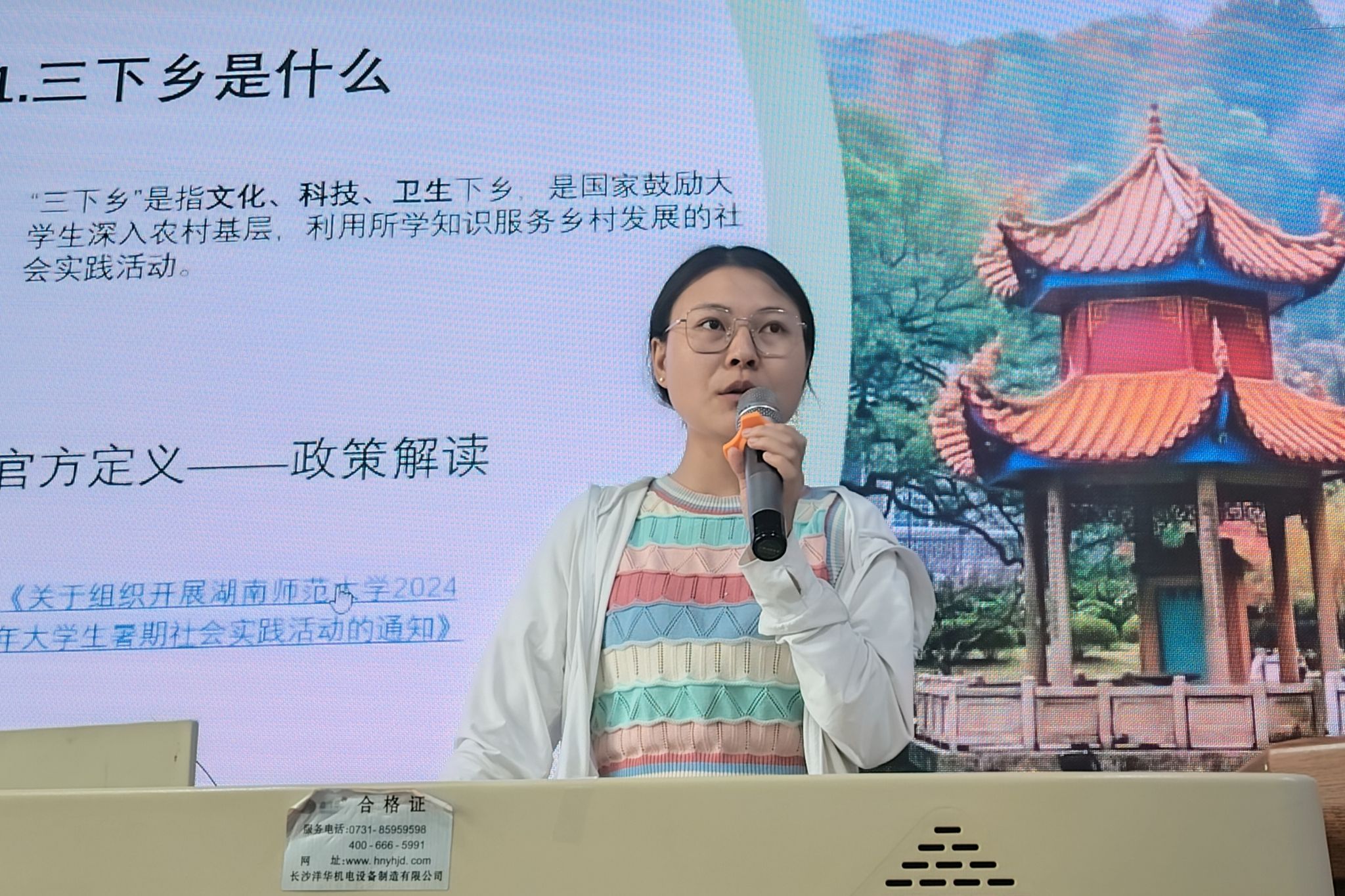 (通讯员陈怡廷罗荔彤)2025年5月20日中午,物理与电子科学学院团委社会实践部于格物楼109教室举办“三下乡”暑期实践活动宣讲会。2023级刘娟担任主持人,周柏成担任主讲人。