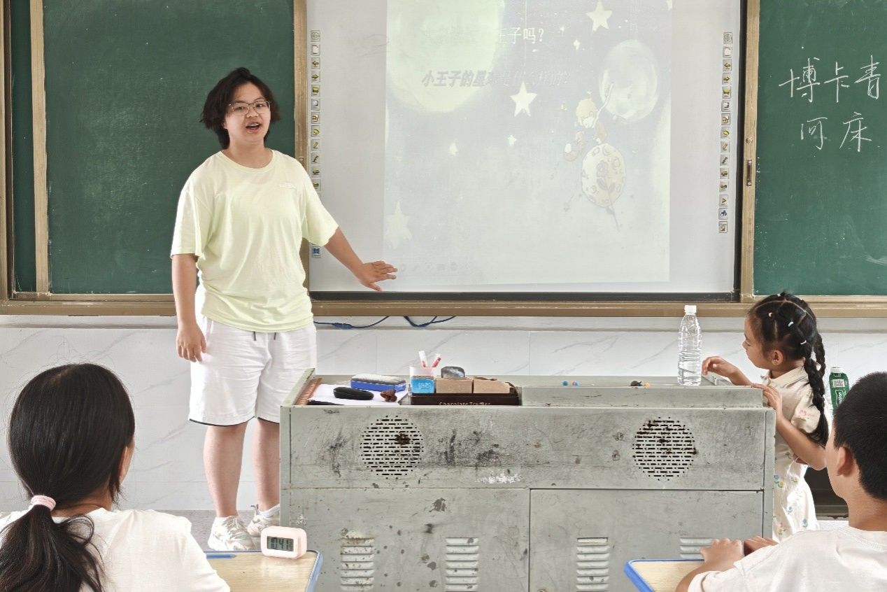(通讯员 罗荔彤 林洪羽 许玲)7月9日上午,物理与电子科学学院“星野寻光”社会实践团于永州市双牌县打鼓坪乡小学开展以“宇宙设计工坊”为主题的手工特色课程。实践团成员黄娅妮担任主讲人。