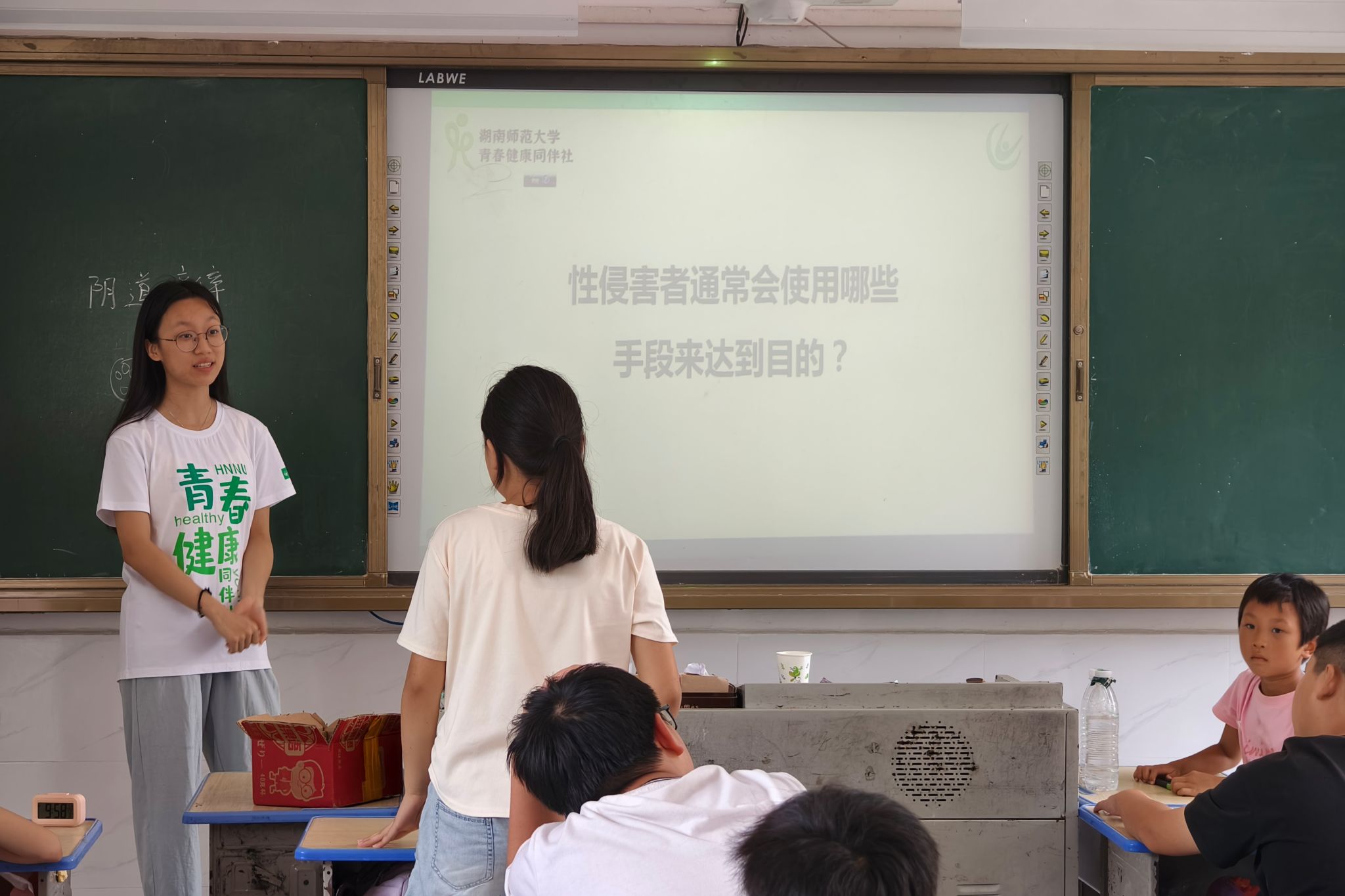 (通讯员 田恬 黄檬)7月15日上午,物理与电子科学学院“星野寻光”社会实践团于永州市双牌县打鼓坪乡小学开展青春健康教育课程。邓蕊担任主讲人。