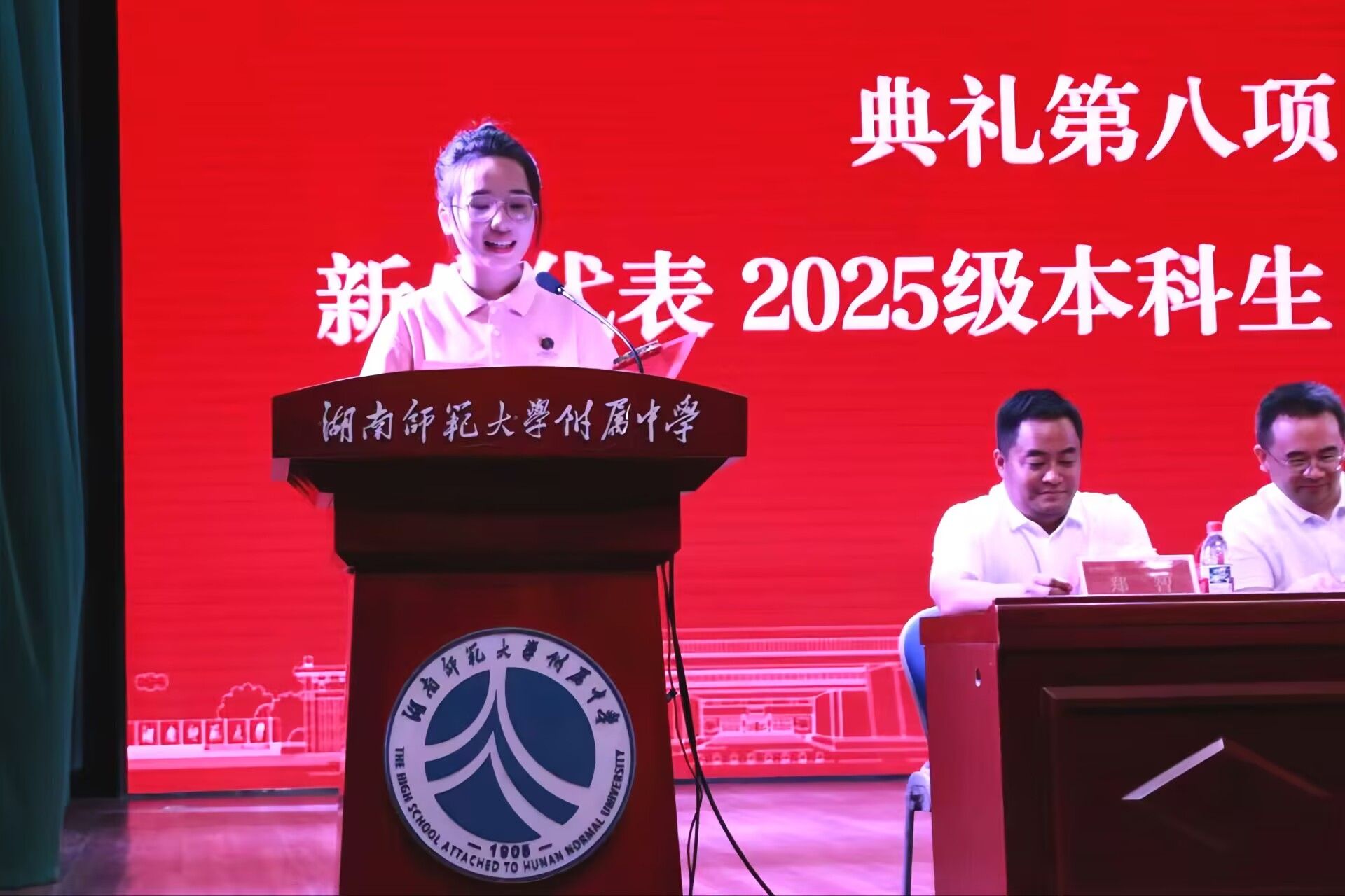 新生代表吕思洋对学院领导、老师及学长学姐的关心与支持表示感谢,并代表2025级全体新生郑重承诺:将尽快适应大学生活,保持团结互助,树立远大目标,努力成长为品学兼优的物电学子。