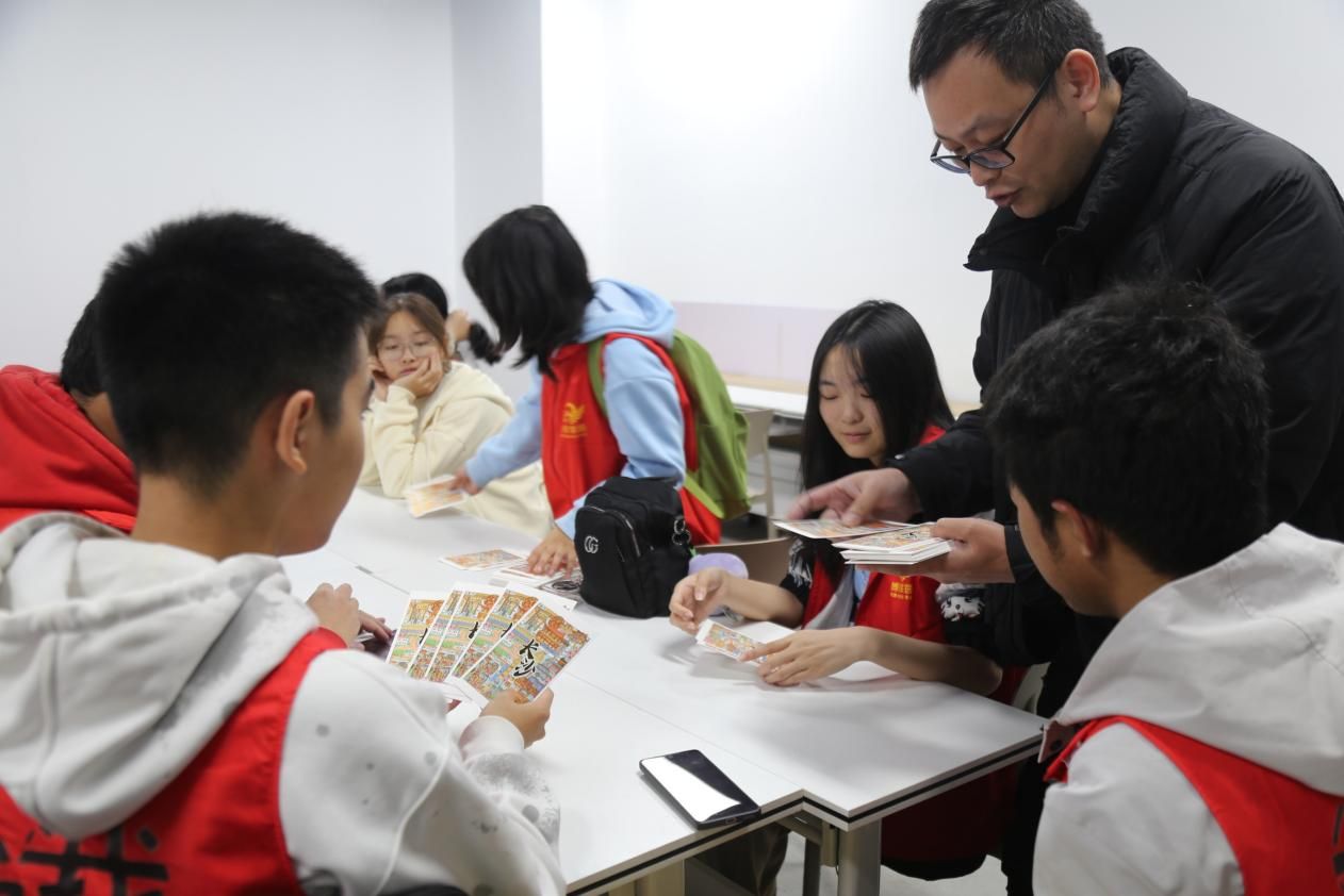 志愿者教心智障碍学员组装明信片