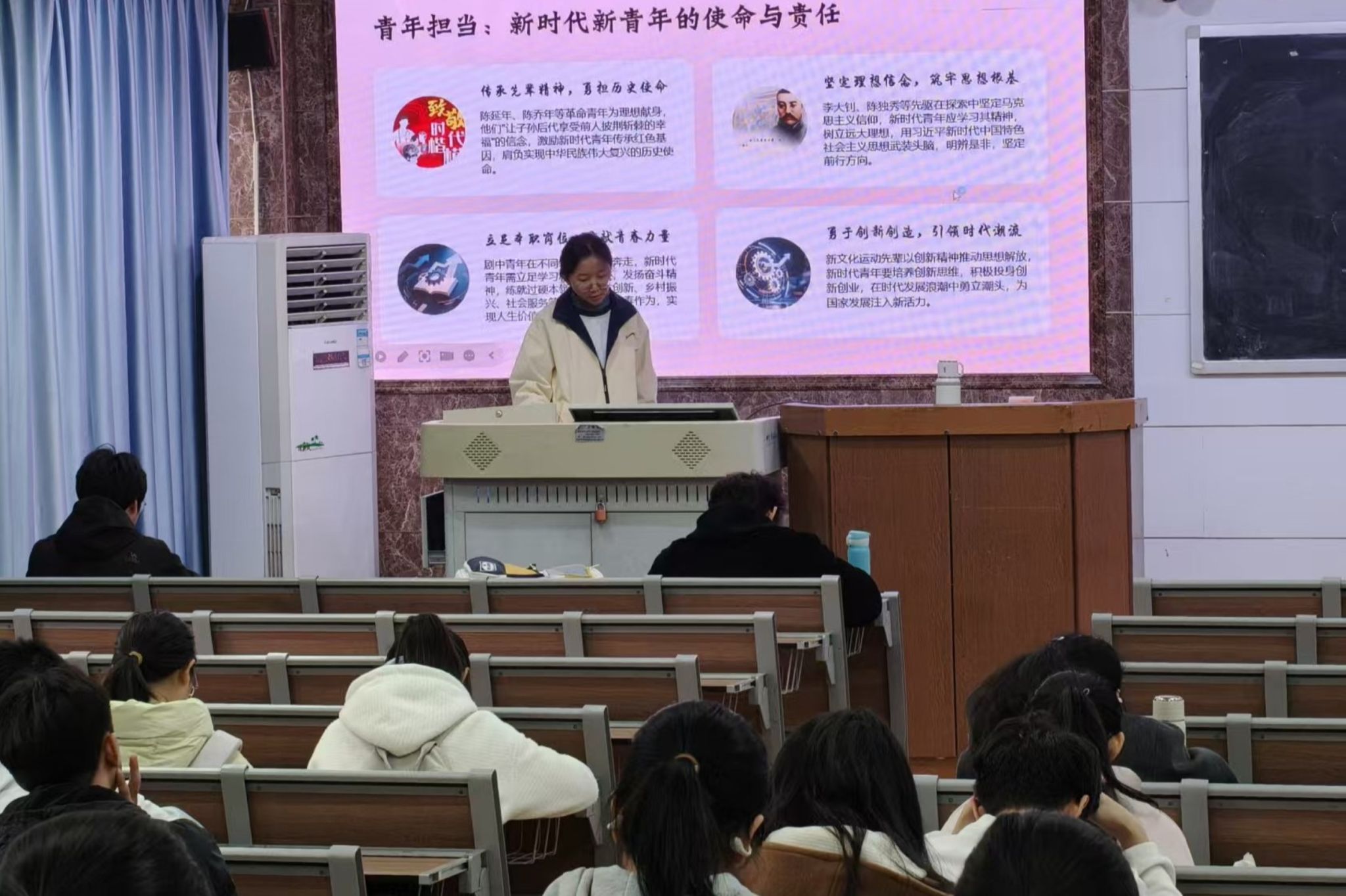 (通讯员 刘蒙 邓湘源)12月5日中午,物理与电子科学学院团委青发部于格物楼109教室开展主题为“觉醒年代:新青年与马克思主义的早期传播”的第八期“知行团校”理论班第二次课程。此次课程由谭政、陈怡廷担任主讲人。2024级、2025级知行团校理论班成员参加。