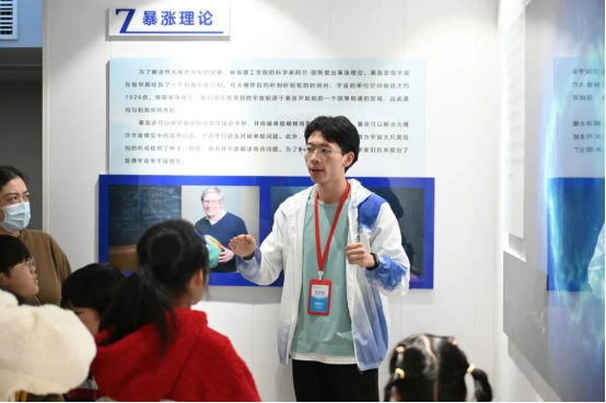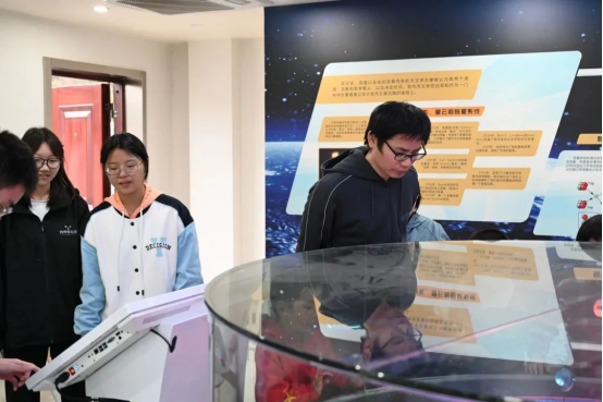 讲解员们带领参观者参观湖南师范大学天文馆,并介绍了馆内展厅相关天文科普内容与天文馆的内部建设。