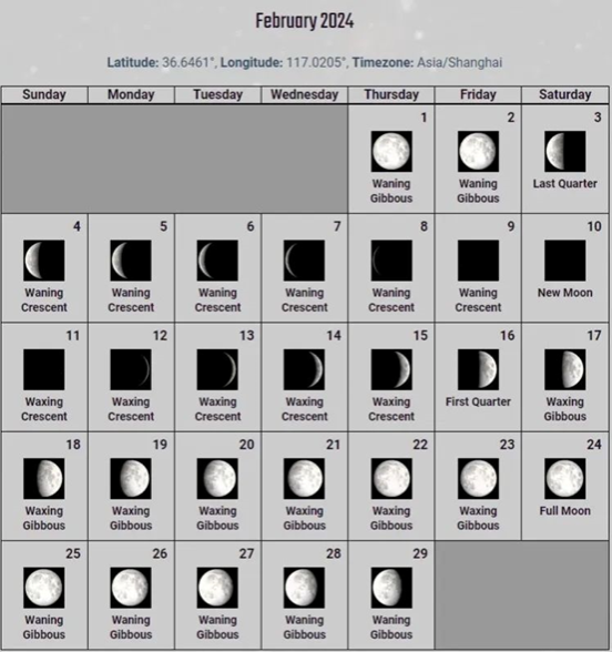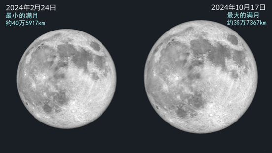 2024年2月24日元宵节晚上20:30望,年度最小满月,距离40万5917.129公里,视直径29'25.7"。