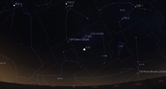 2024年3月30日23:03心宿二合月(视赤经16h30m54s),地心所见心宿二在月球以南仅0.26度,如此近的距离,太平洋地区可见月掩心宿二。