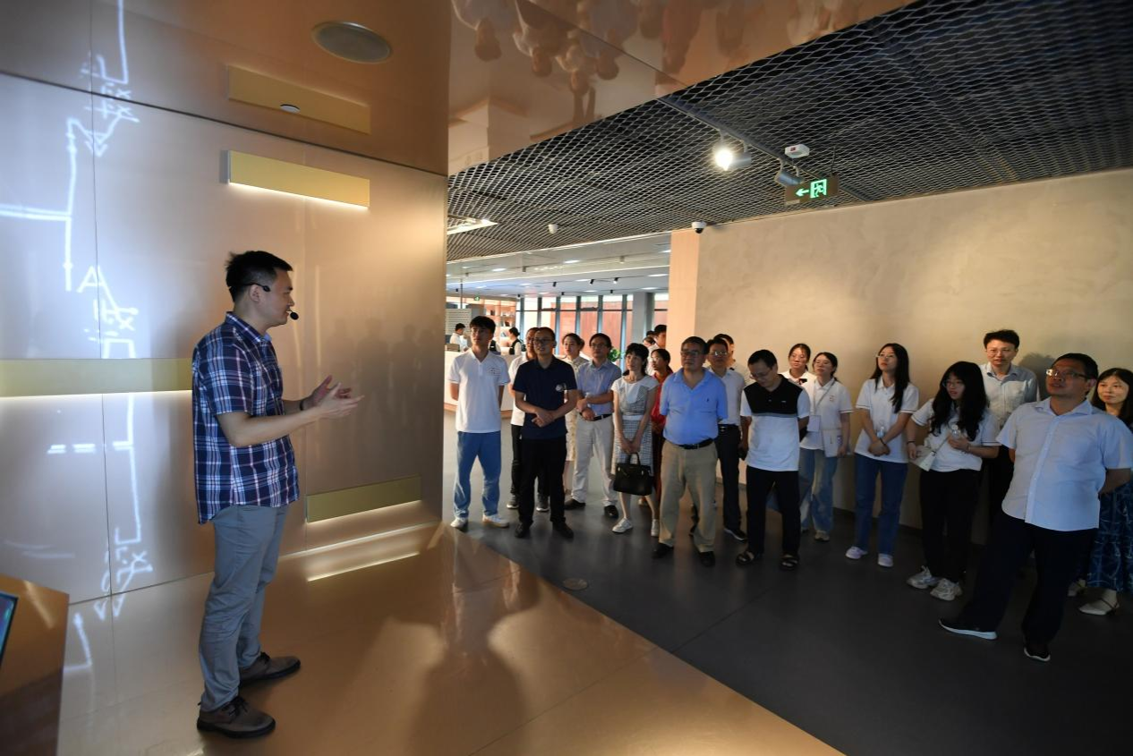 会后,大家一同参观了湘江新区城市规划馆和李自健美术馆。在湘江新区城市规划馆AI对话展示区域,支部党员、物理系副主任刘自然就学生借助AI撰写论文、使用技巧等方面进行了分享,并就学院在相关科技成果转化方面的阶段成果进行了推介。在李自健美术馆,支部党员周海青带领大家仔细观看每一幅精美的艺术品,聆听讲解员深度解读巨幅历史油画《南京大屠杀》,进行“牢记历史,勿忘国耻”爱国主义教育,全体党员心灵深处无不受到强大撞击和震撼。