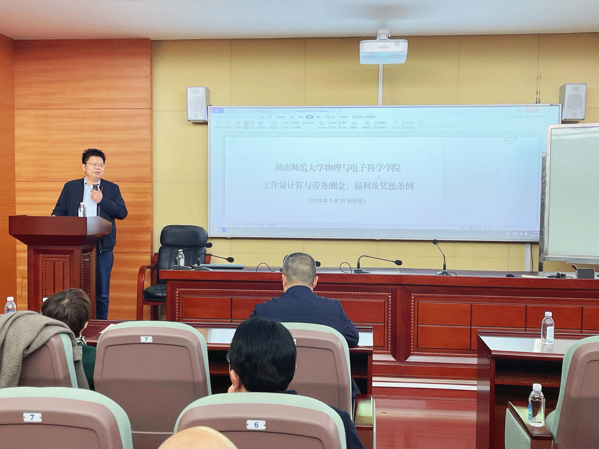 会议期间,与会代表们以高度的责任感紧紧围绕学院的学科建设、师资队伍建设、人才培养、青年人才发展等中心工作进行了深入交流和讨论。院工会主席吴普训组织代表们讨论并修订了《物理与电子科学学院工作量计算与劳务酬金、福利及奖惩条例》。