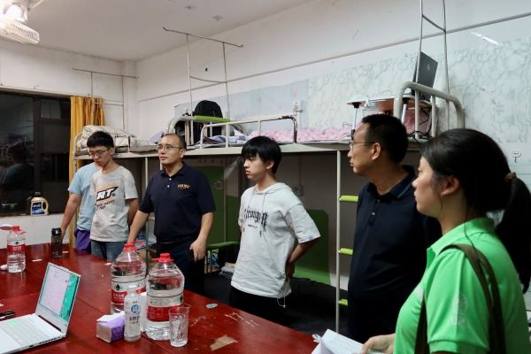 迎新期间,院党委书记罗嵘、党委副书记郭铭伟、物理系系主任钟显辉、2023级新生班导师及学办全体辅导员对本科新生宿舍进行走访。走访中,他们与萌新面对面交谈,详细询问新生对新环境的适应情况,为即将踏入大学新征程的萌新们送上最亲切的问候和最真挚的期望。罗嵘向萌新们介绍了学院概况和学院学生管理工作,鼓励大家在大学中合理规划学习休闲时间,矢志奋斗,不负年华。郭铭伟反复提醒萌新一定要提高知诈、识诈、防诈意识,提升自身防范能力。萌新们对学院领导的走访表示感谢,他们表态,会尽快适应大学学习生活,志存高远,脚踏实地,在大学这一青春赛道上奋力奔跑。