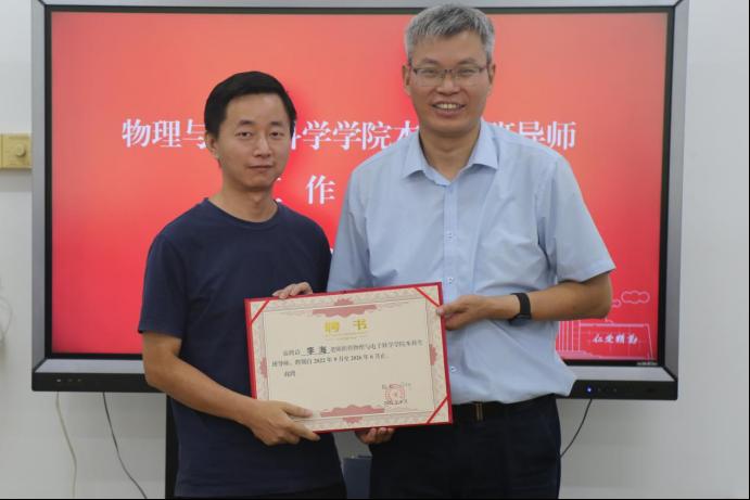 钱盛友宣读2022级班导师聘任名单。唐东升为2022级本科生班导师颁发聘书。