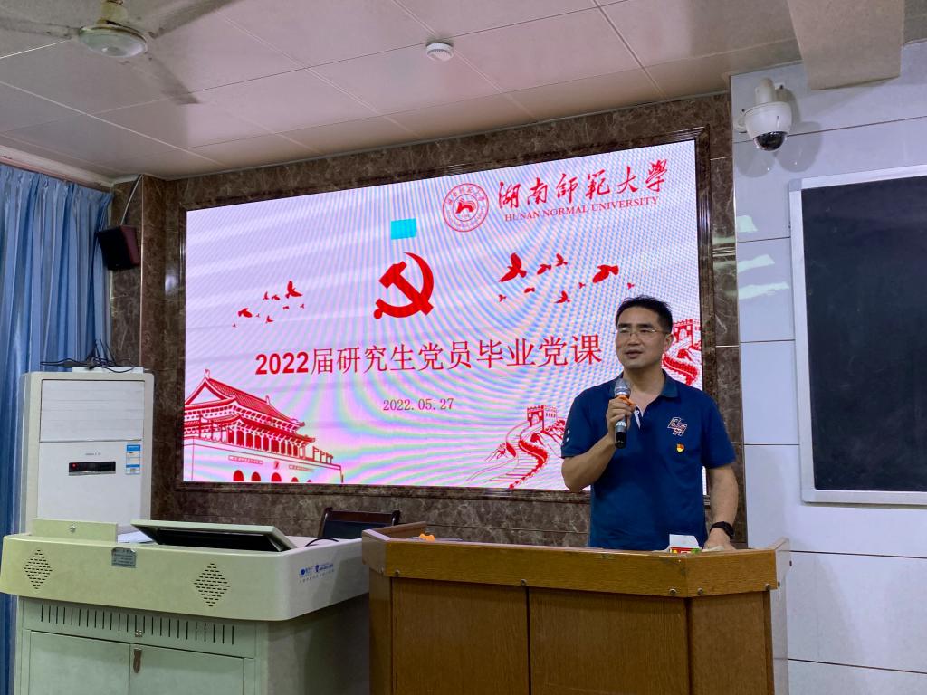 5月27日,物理与电子科学学院研究生毕业党课在格物楼109教室举行,院党委书记罗嵘主讲,副院长欧阳钢、副书记郭铭伟出席会议。