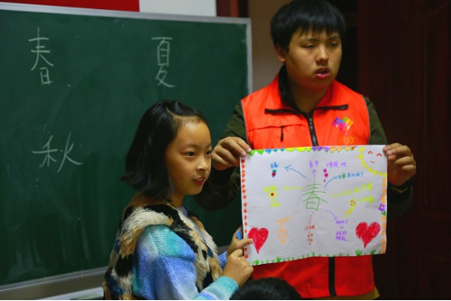 此次活动以课堂教学形式开展,分为老师授课、分组讨论和小组展示三部分。老师以‘水果’为例进行提问,学生们发散思维踊跃举手回答。分组讨论中,学生共分为四组,分别以‘春、夏、秋、冬’为主题进行讨论,各小组全体成员积极提出想法,一同合作完成本小组的主题任务。在小组展示部分,各小组依次上台分享小组讨论成果。