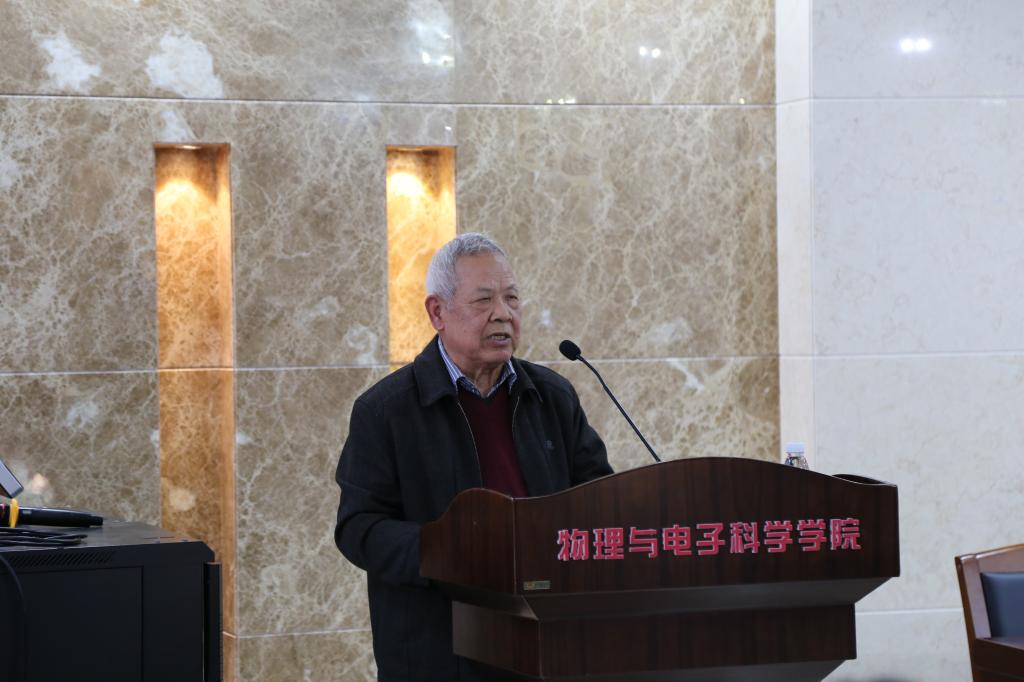 (通讯员 罗瑞霞 陶惠茹)12月2日下午,物理与电子科学学院关工委、学生党支部于格物楼509报告厅开展题为“学党史、铭初心,做党‘第二个百年’的先锋战士”的专题党课。此次活动由关工委杨复兴、海文华、陈祖福三位老师主讲,院关工委常务副主任唐咸林主持。校关工委副主任谭伟老师、院党委副书记郭铭伟、学工办老师及全体本科生党员、积极分子参加此次党课学习。